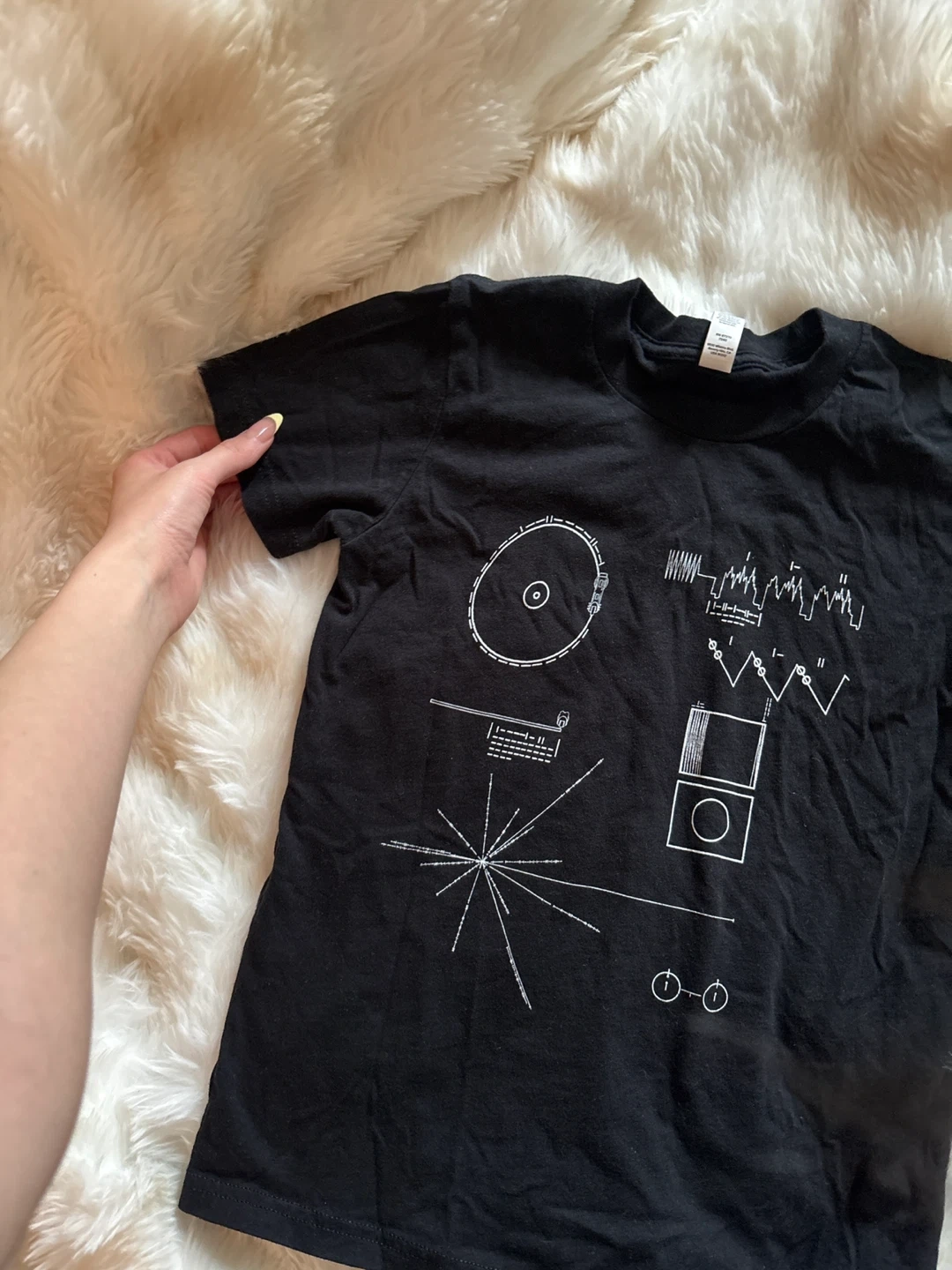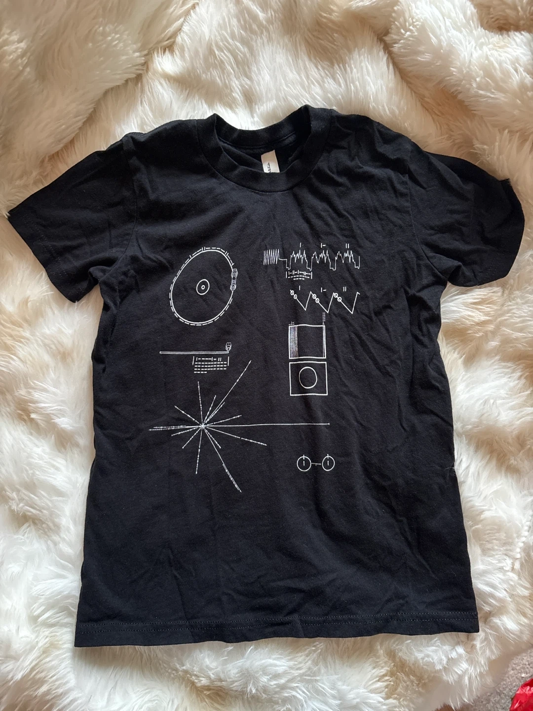 Buy & SellVoyager Golden Disk Design T-shirtVoyager Golden Disk Design T-shirt$7M size (I show my hand in the second picture as reference). Would fit well someone petite or a child.ConditionLike newAge6-8 yearsWHERE TO MEETMoody ParkView MapSELLERverifiedDianaUptown691 review0 chats·0 favorites·3 viewsSEND CHAT TO SELLERHi Diana! I’m interested in your listing.Hi Diana! I’m interested in your listing.Get the Karrot app to chatSign In to chat