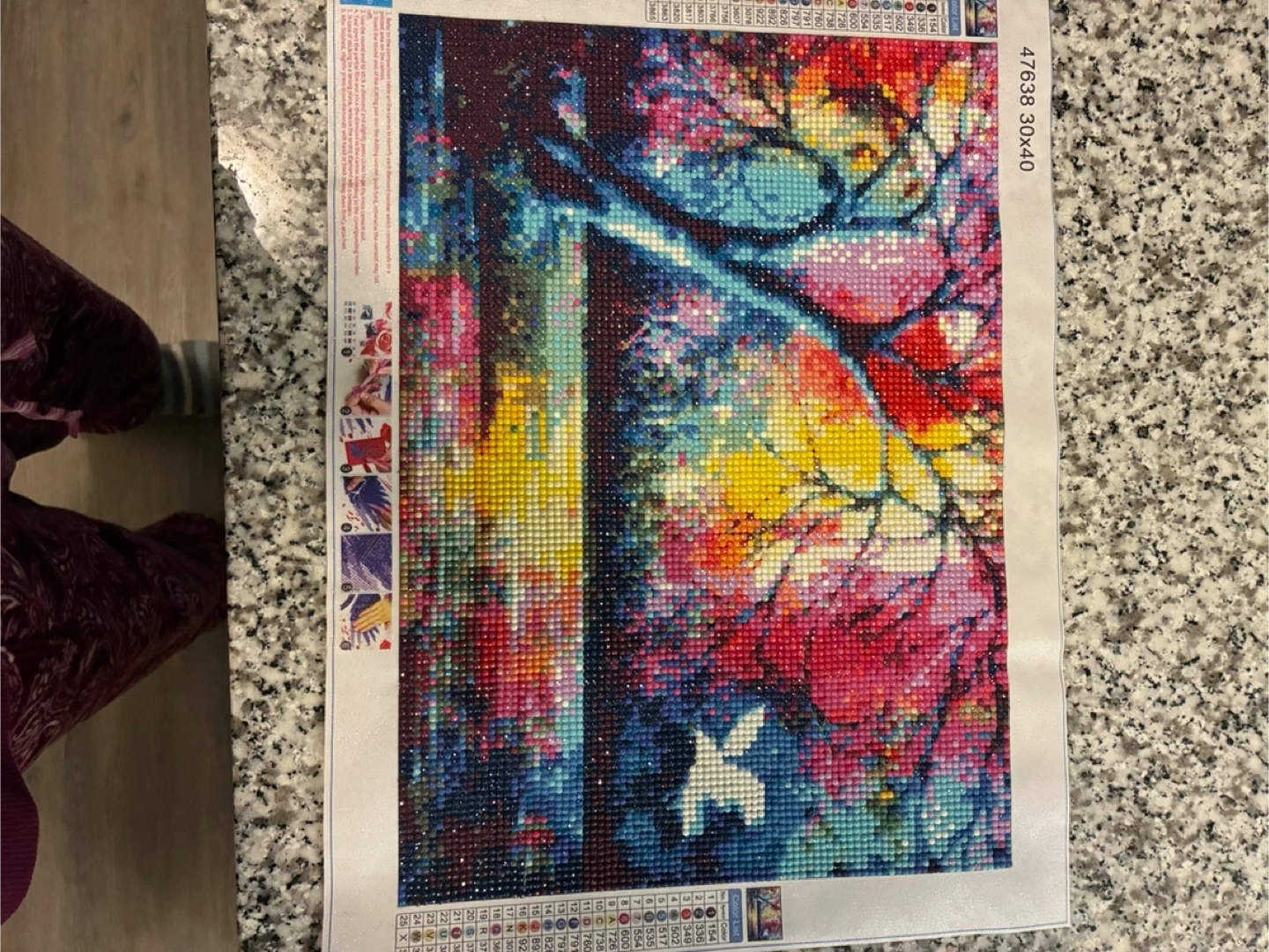 Complete Diamond painting kit with a vibrant tree and floral design. Canvas size is 30x40cm. Comes with everything you need to create a beautiful piece of art!