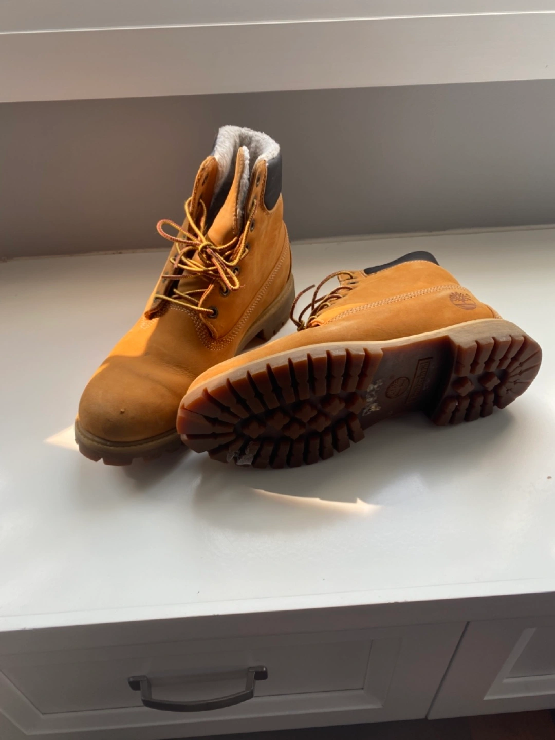 A pair of brown coloured boots. Features laces and thick soles. Perfect for stepping out on a crisp autumn day and enjoying the beautiful scenery around you.
