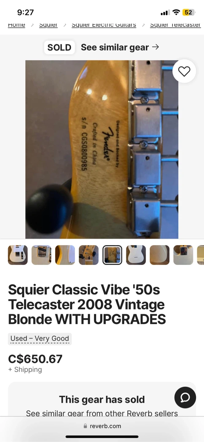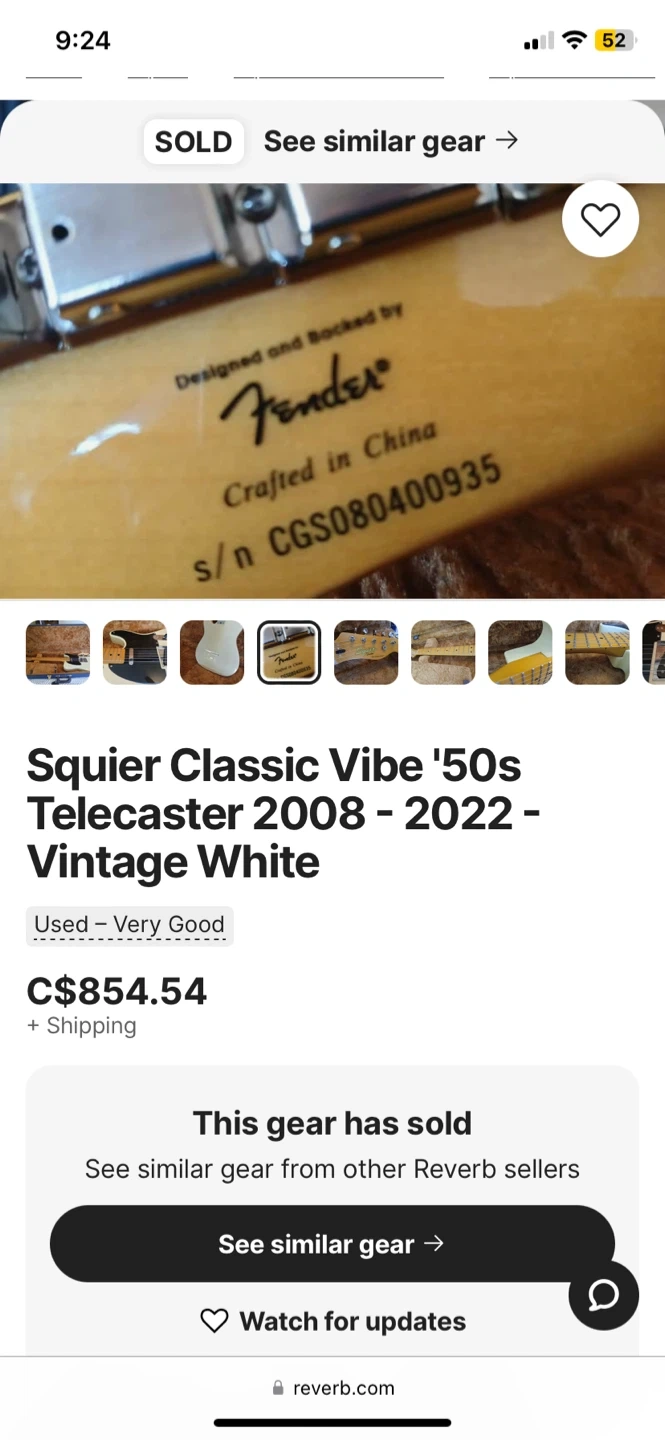 Selling my Squier Classic Vibe 50’s Telecaster.