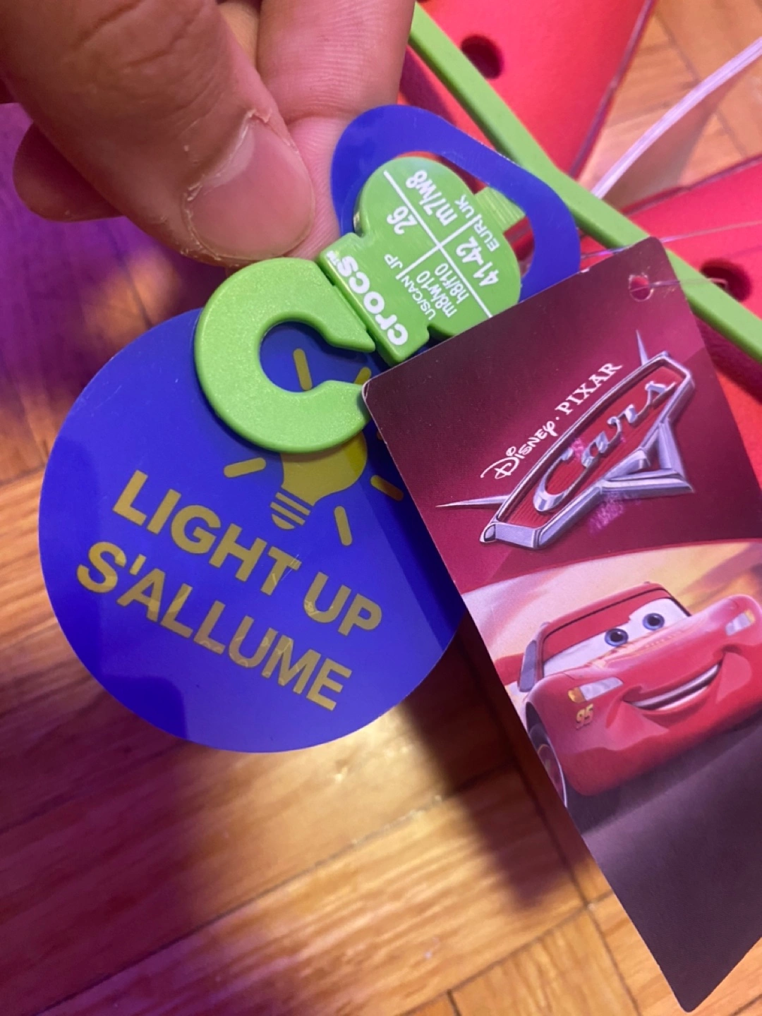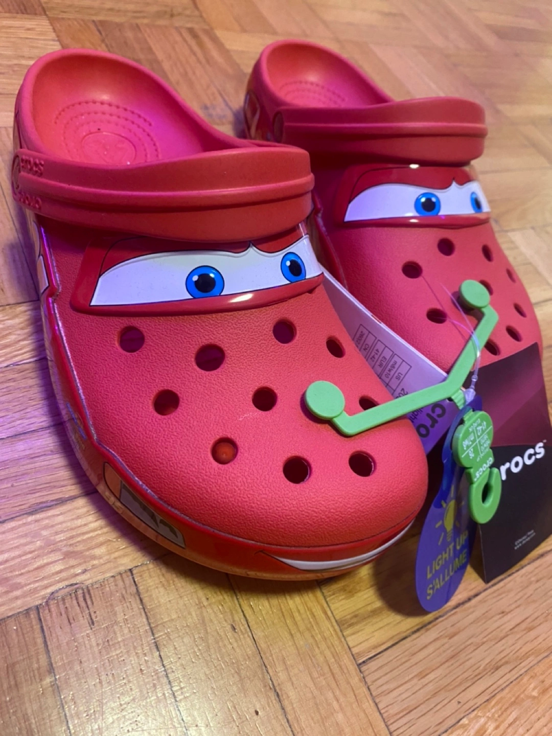 These are a pair of brand new Crocs clogs featuring a Disney Pixar Cars design! They are a size 8 for men and 10 for women. The tag says "Light Up S'Allume". All tags+Crocs bag included