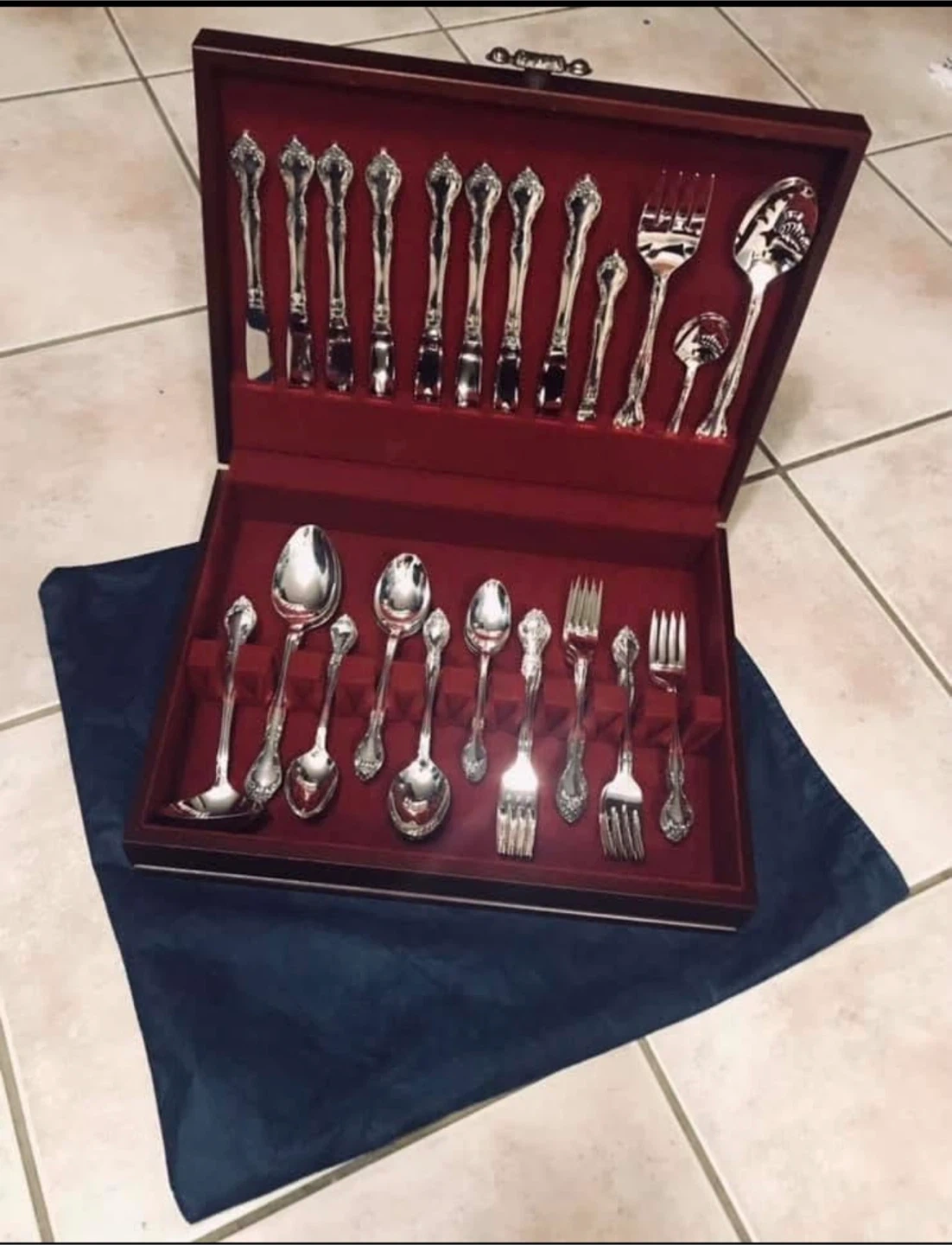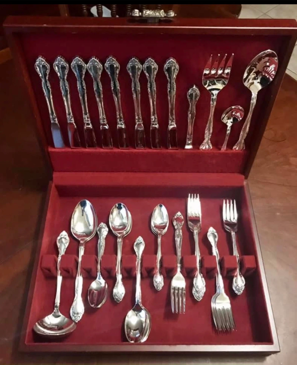 Oneida Dover 47-piece Flatware Set in McGraw Vintage Mahogany Silverware Chest