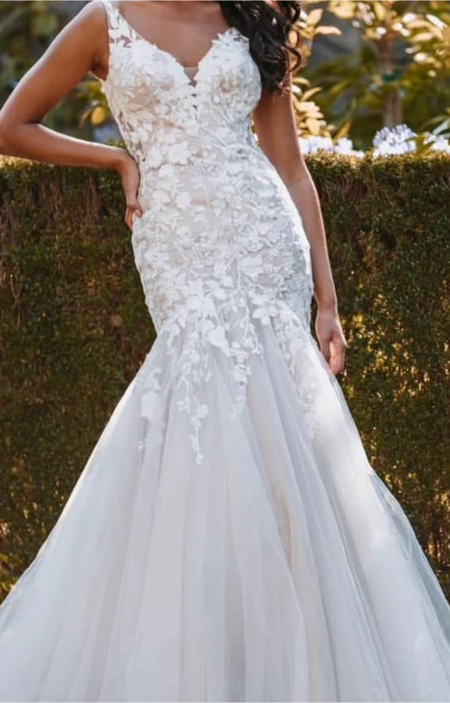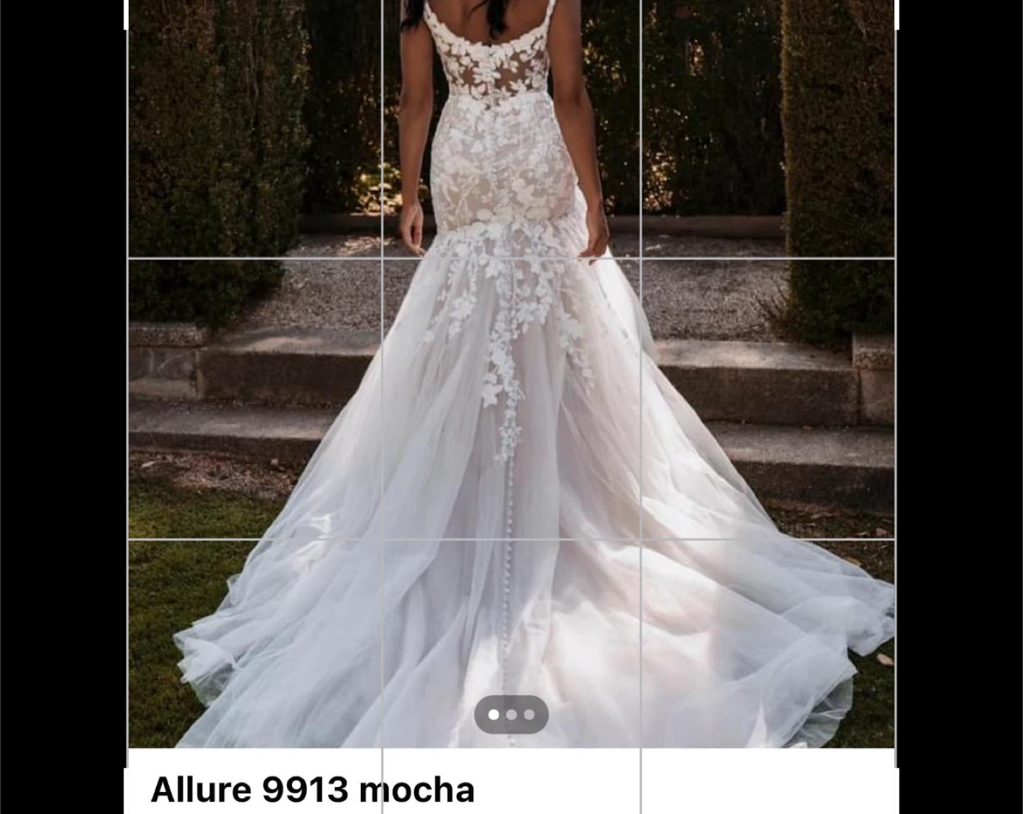 Selling an Allure Bridals wedding dress, style number 9913 in Mocha. It's a beautiful gown with delicate lace detailing and a flattering silhouette. Perfect for your special day!