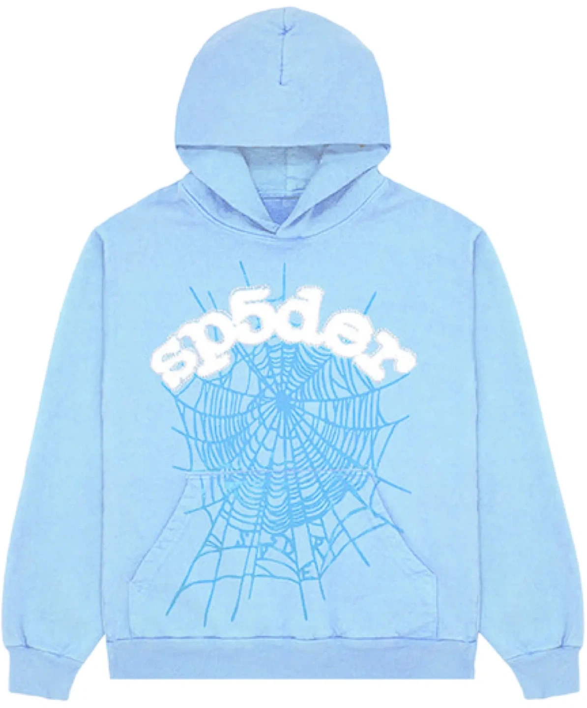 Light blue Sp5der hoodie with a spider web graphic. It's made of soft material. This hoodie's design is great for casual wear. 1 of 1 rep. Check acc for other colours.