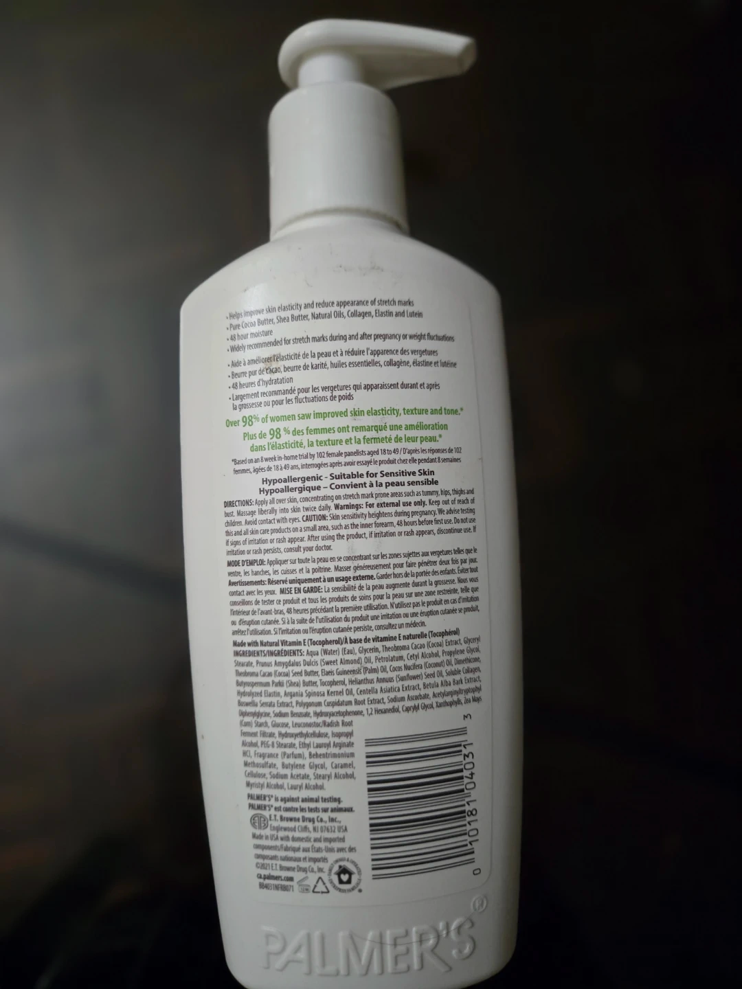 Palmer's Cocoa Butter Formula Massage Lotion helps improve skin elasticity and reduce the appearance of stretch marks. It contains collagen, elastin, and argan oil to help reduce the appearance of stretch marks. It's also free of mineral oil, parabens, and phthalates, and is dermatologist approved. The bottle contains 250 ml of body lotion.