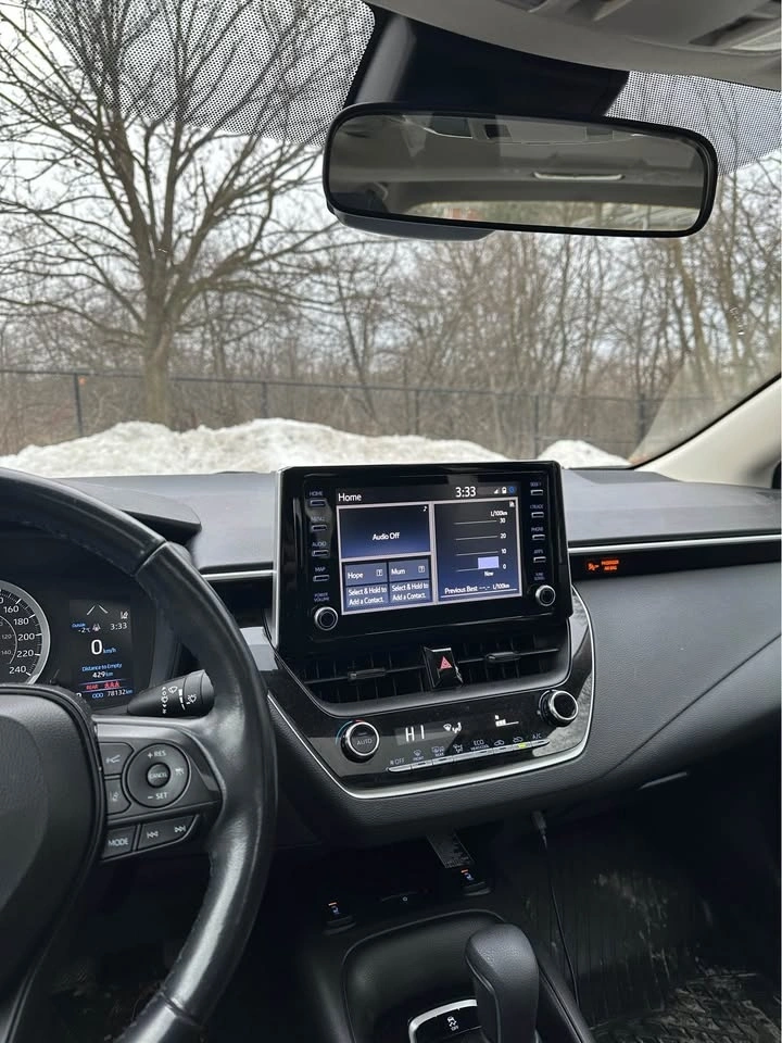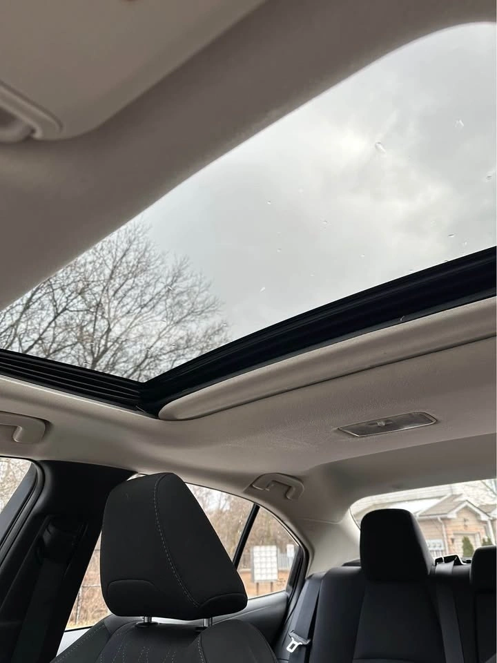 This is the higher trim level offering comfort, tech, and safety. Features include an 8-inch touchscreen with Apple CarPlay/Android Auto, sunroof, automatic climate control, heated power mirrors, heated steering wheel, and heated premium fabric seats. Toyota Safety Sense is included with Pre-Collision System, Lane Departure Alert, and Dynamic Radar Cruise Control. Also has a backup camera and a Smart Key system for keyless entry.