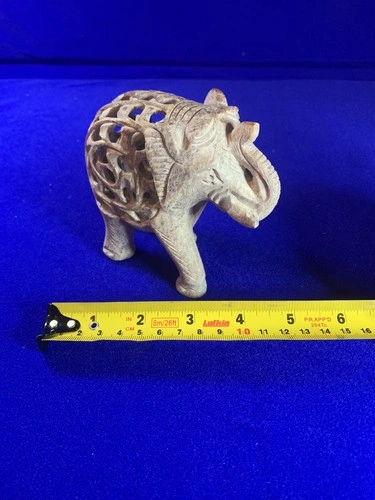 Hand-Carved Soapstone Elephant Figurine - Jali Folk Art