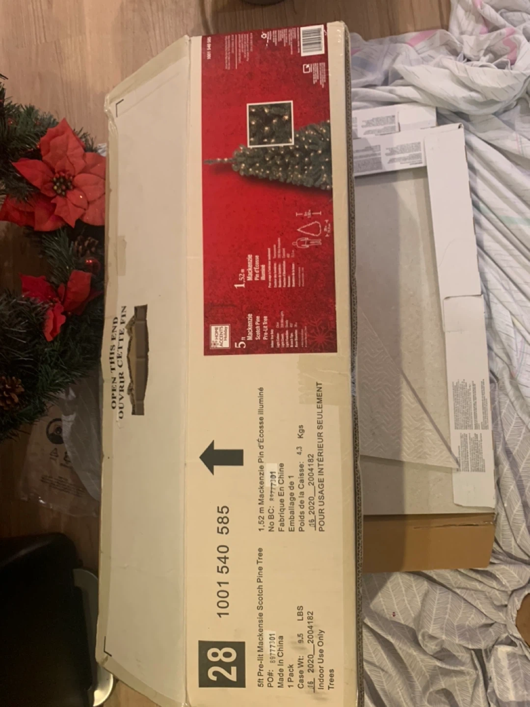 This is a 5ft pre-lit Mackenzie Scotch Pine tree. It's 1.52m tall and made in China. The tree is designed for indoor use only.