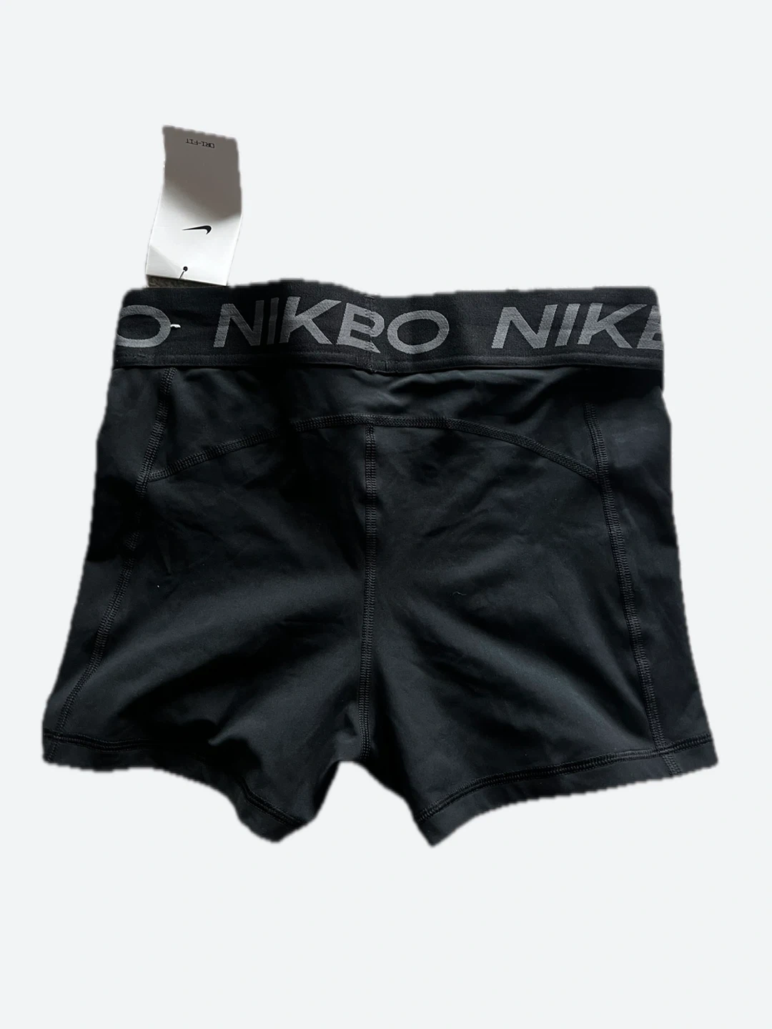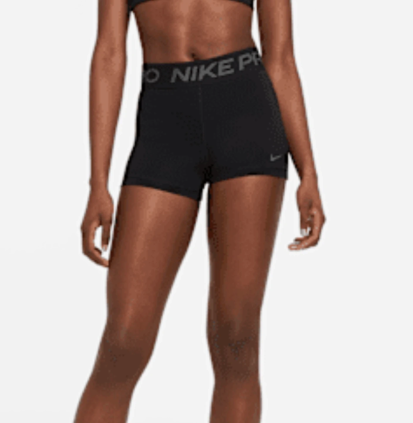 Nike Pro Dri-FIT 3” shorts. These shorts are designed for performance with a comfortable, supportive fit. They're made with moisture-wicking fabric to keep you dry during workouts. Elastic waistband with repeating "NIKE PRO" logo.