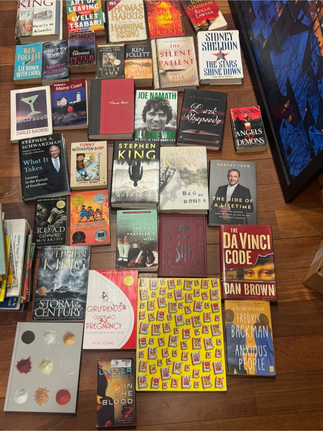 A large collection of over 40 various books from different authors and genres. Includes titles by Stephen King, Dan Brown, Ken follet alex michaelides Thomas Harris and more. Includes 4 first edition Stephen king hardcover novels . Perfect for avid readers looking to expand their library.