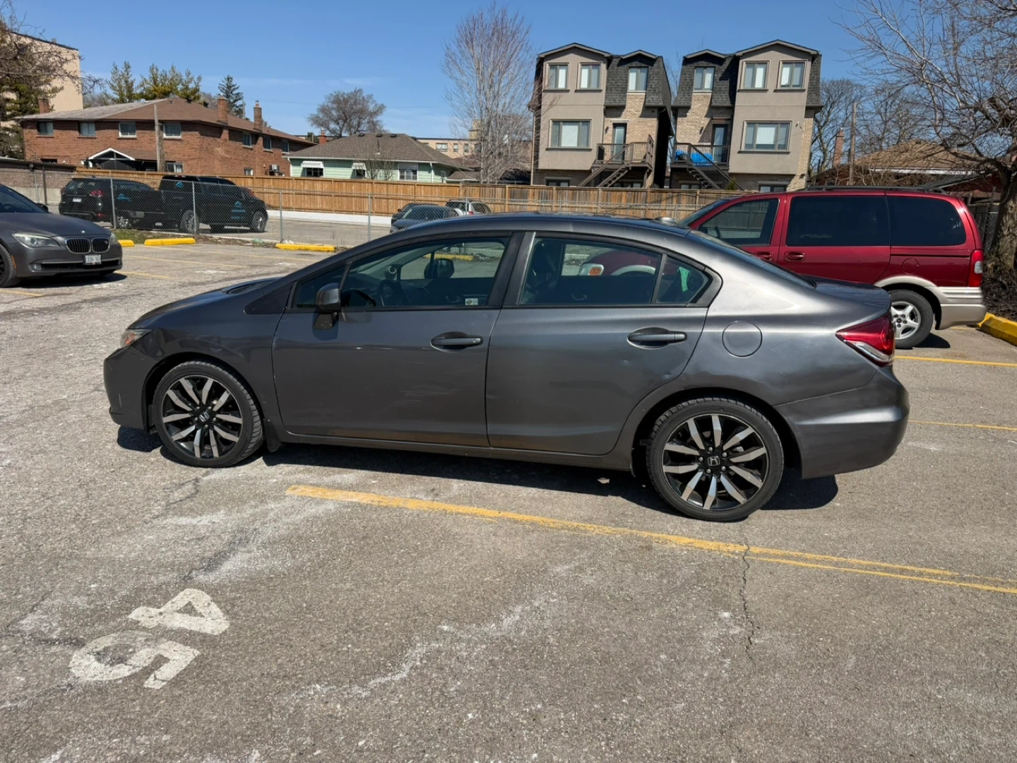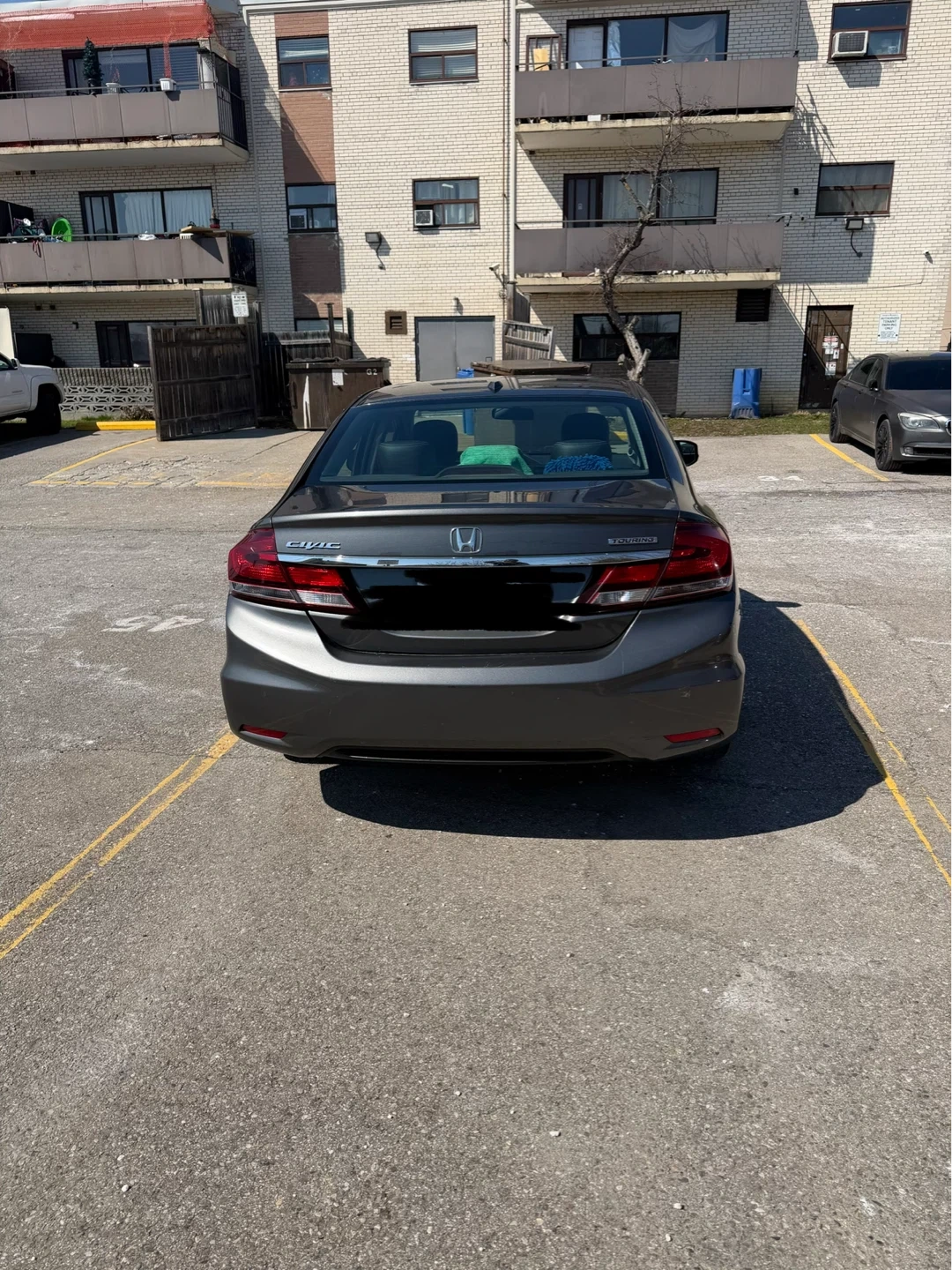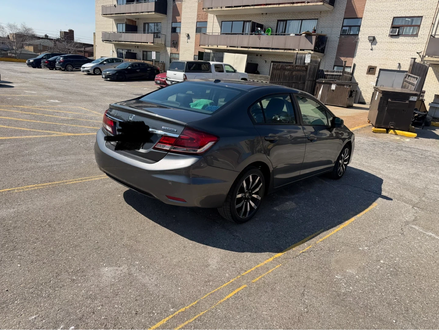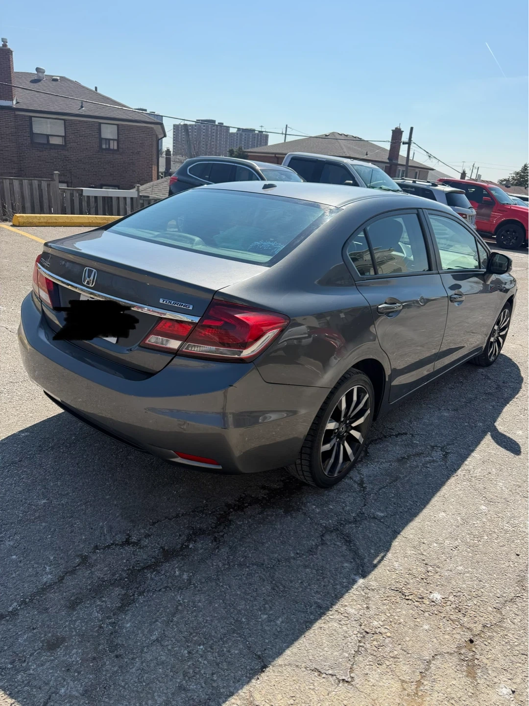 This is a dark grey Honda Civic Touring sedan. It has a comfortable black interior. This car's a reliable choice for daily commuting or road trips. It's a practical and stylish sedan.