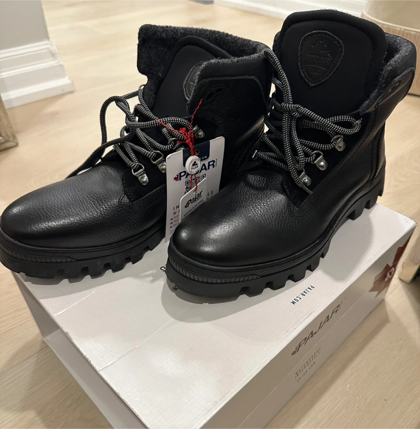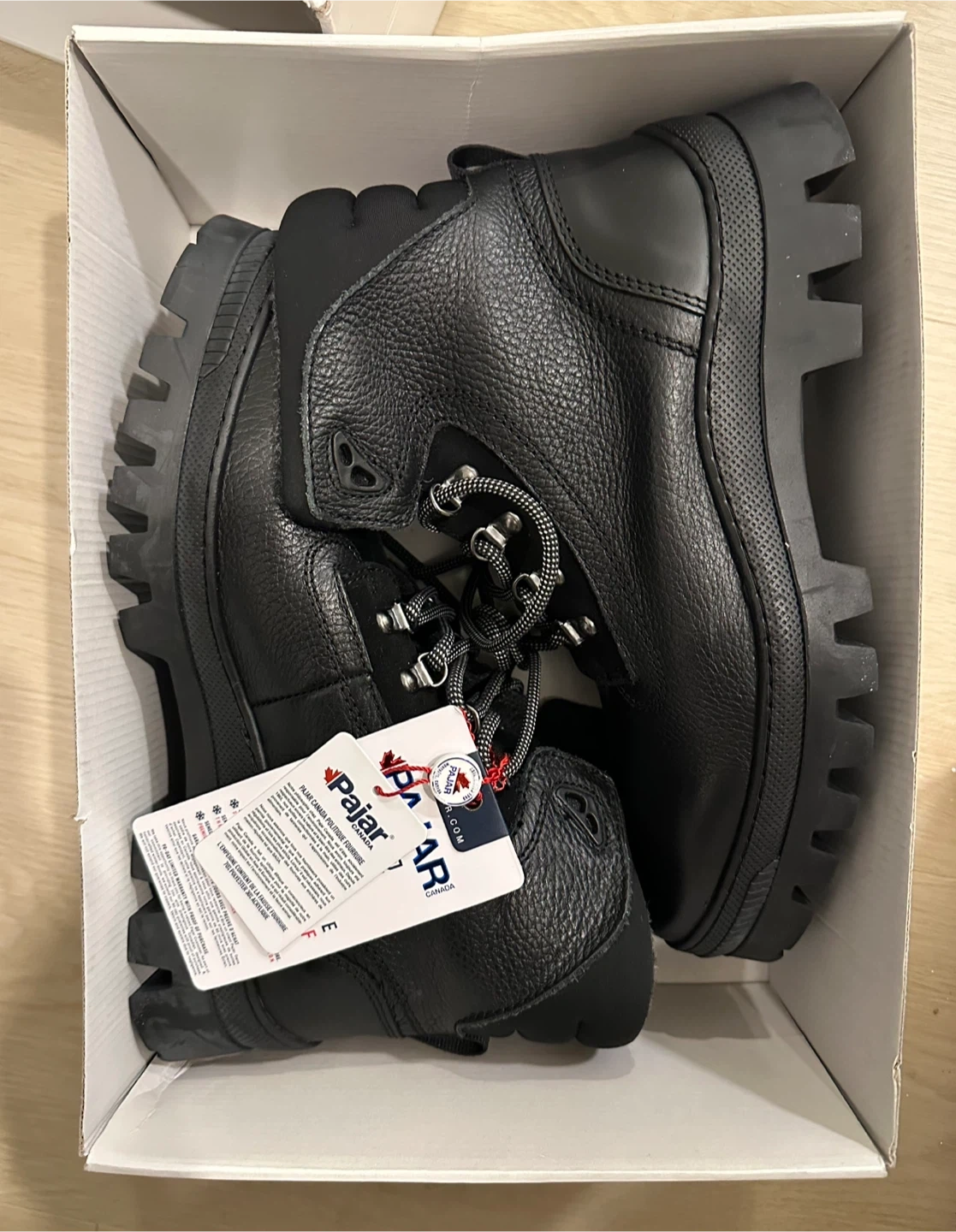 $60-Men’s Brand new Pajar winter boots in black leather. They're insulated for warmth, waterproof for up to -30 temperature