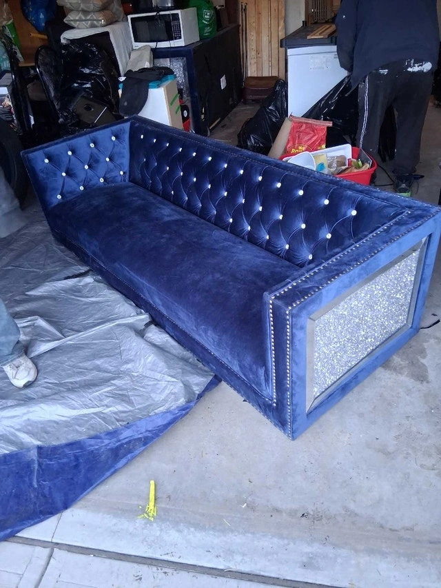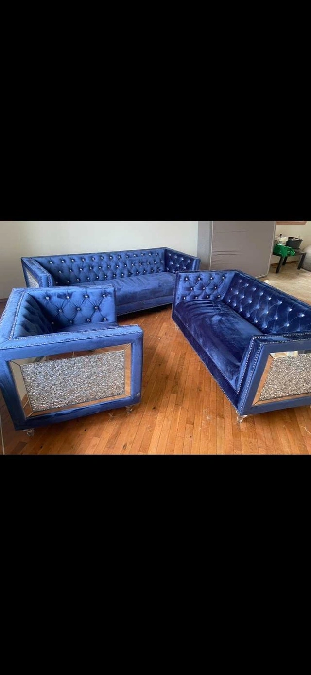 Meridian Furniture "Lucas collection" 3-Piece Navy Velvet Set – $3,200 Value