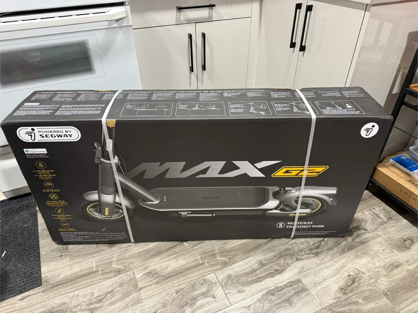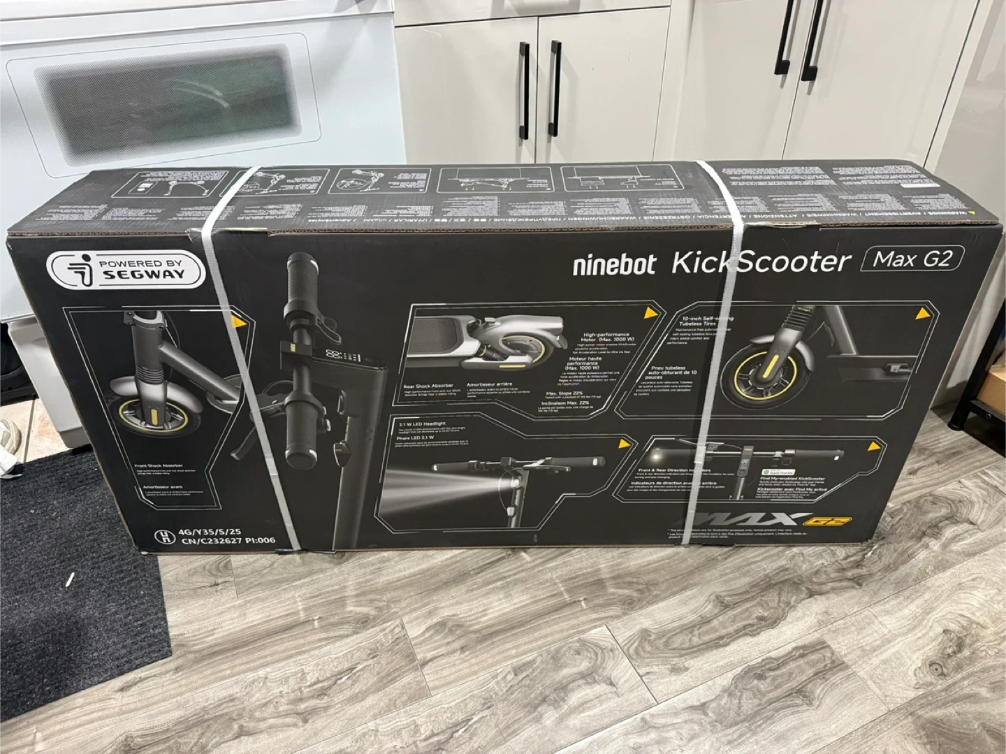 This is the brand new box sealed Segway Ninebot KickScooter Max G2. It features a powerful motor and a durable build for an excellent ride. Maximum speed up to 30 km/h. Range up to 70 km.