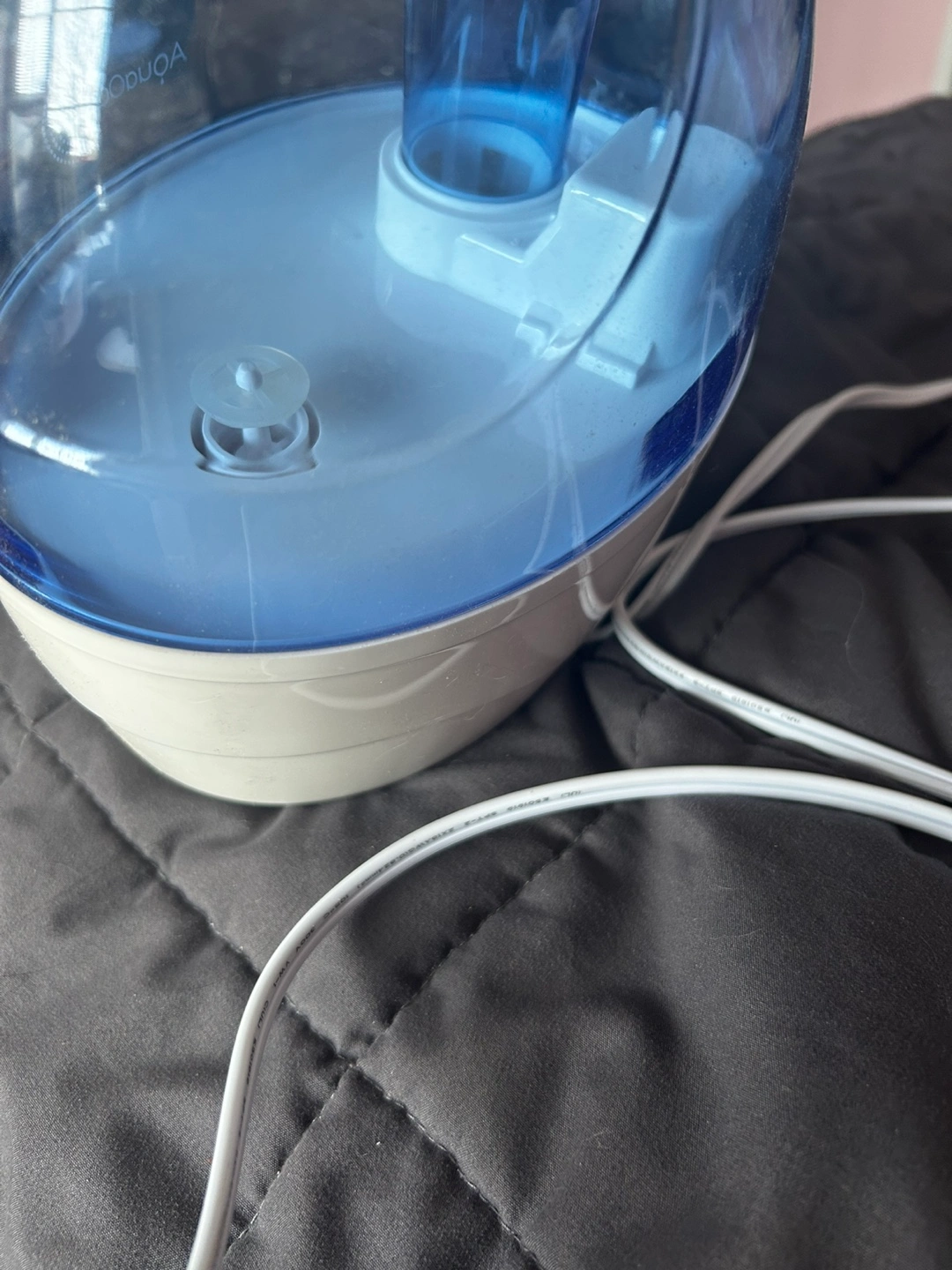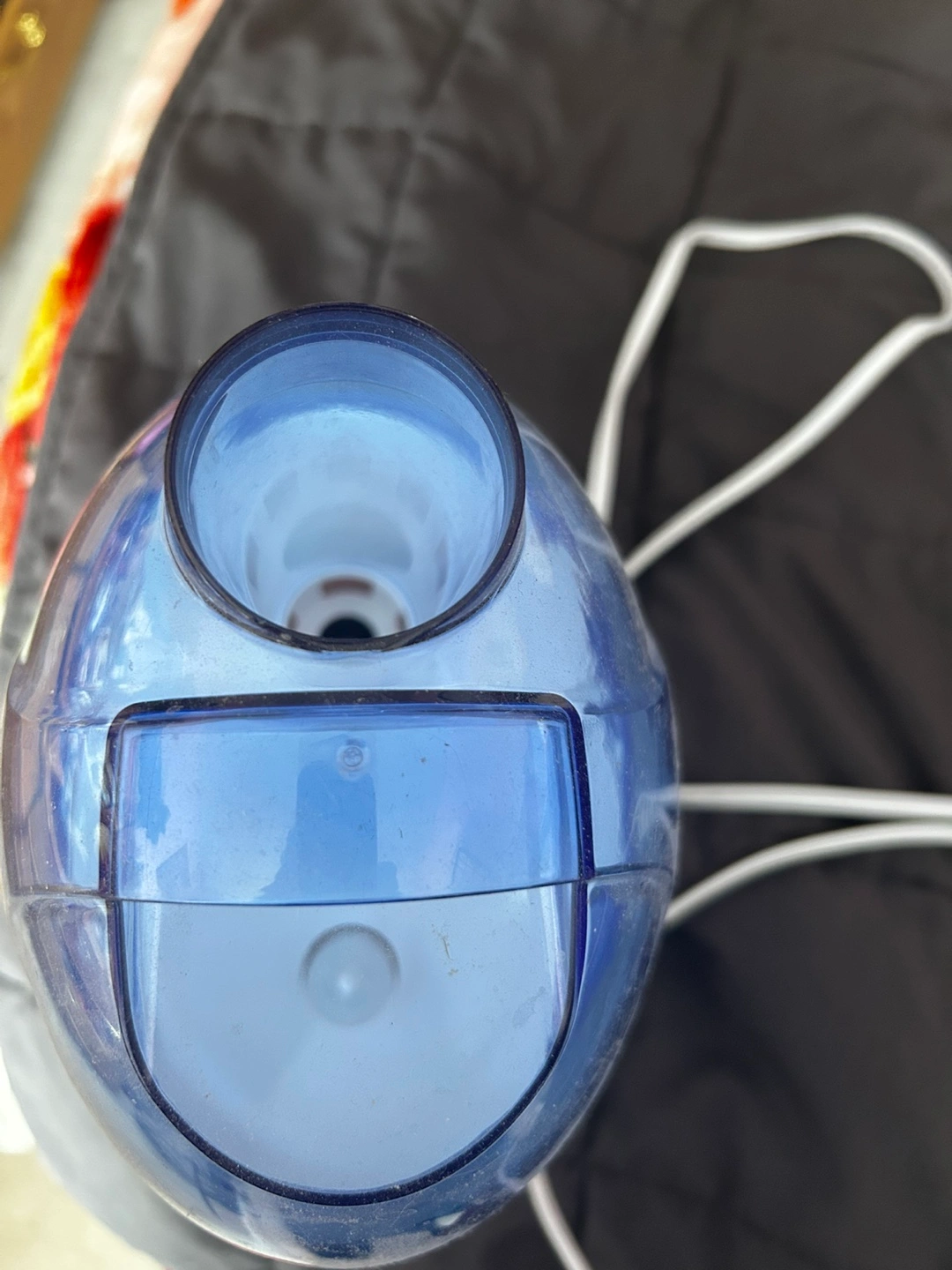 Brand new never used. This is an Aqua Oasis humidifier with a blue and white design. It's suitable for maintaining comfortable humidity levels in your home. Do not add essential oils to the water tank. Originally ordered on Amazon I think.