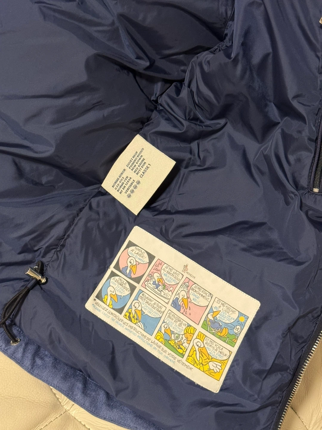 Fully verified via Moncler’s official Certilogo system (code.moncler.com). The interior cartoon wash tag and tricolor neck loop are all intact