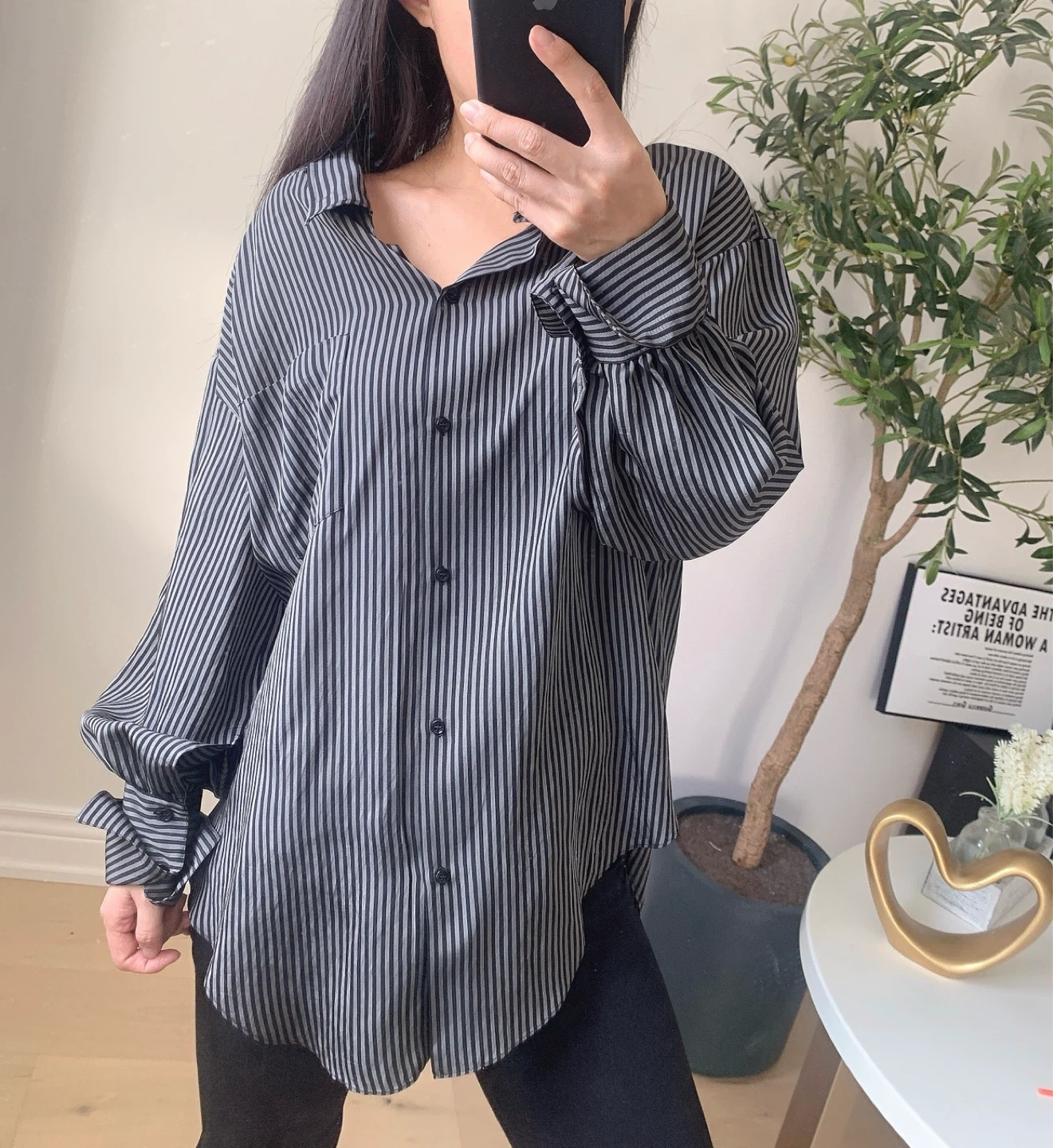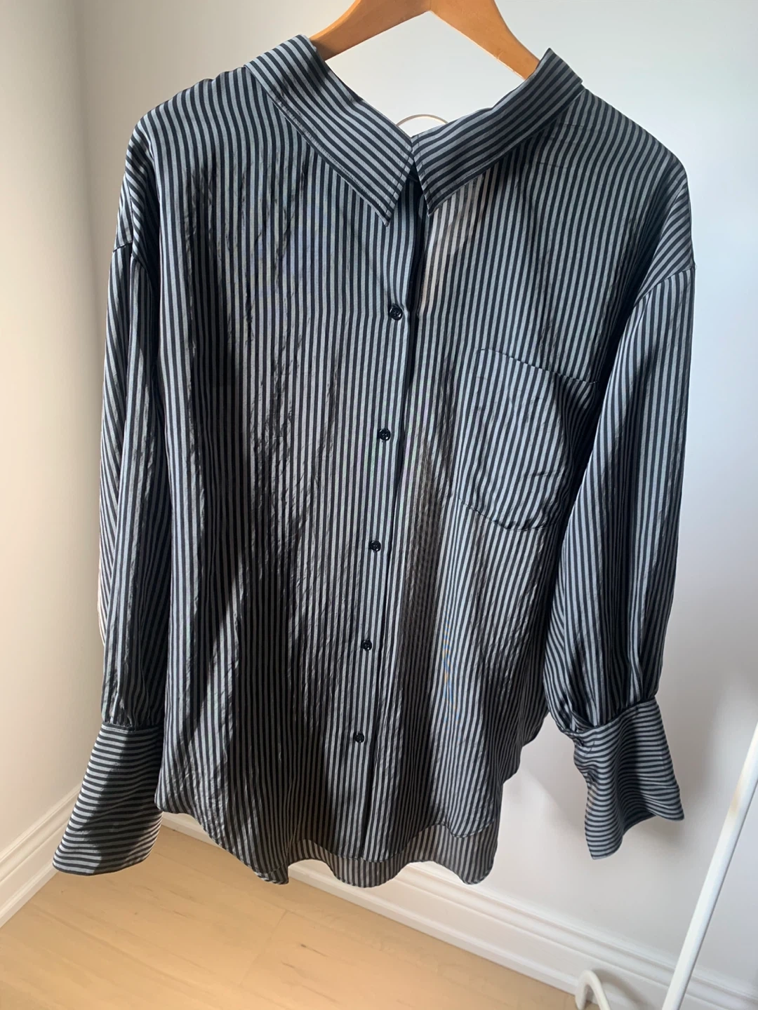 ZARA Oversize Striped Shirt Black Grey Size S New With Tags