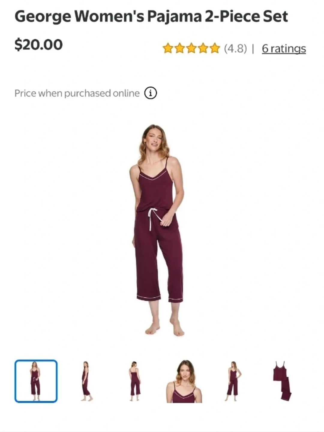 Comfortable women's pajama set with a cami and capri pants. Features contrast piping on the neckline and hem. Elastic waistband with a drawstring. Soft fabric for a relaxed fit.