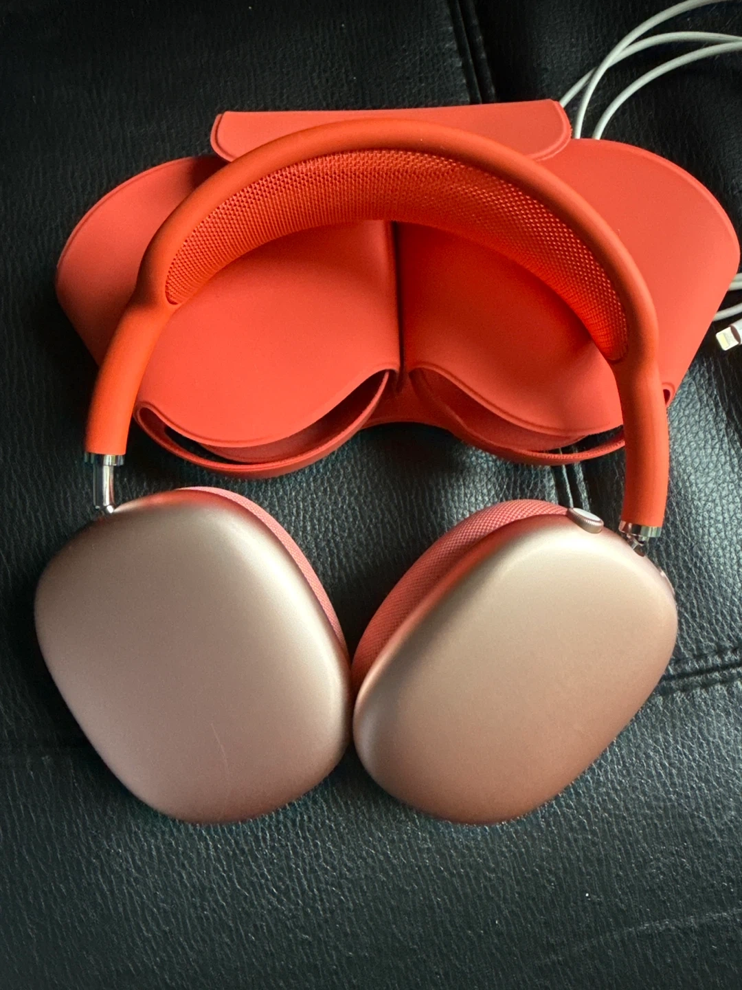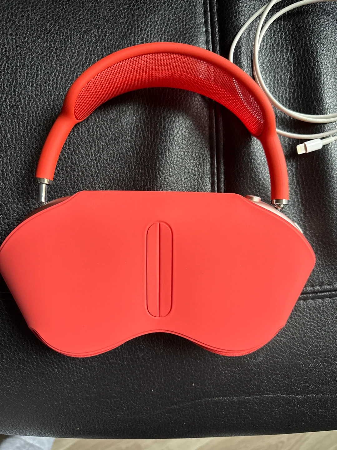 Apple AirPods Max over-ear headphones in red. Includes Smart Case and USB-C charging cable. Top-quality audio and active noise cancellation. These are genuine Apple AirPods and I can share the invoice as well.