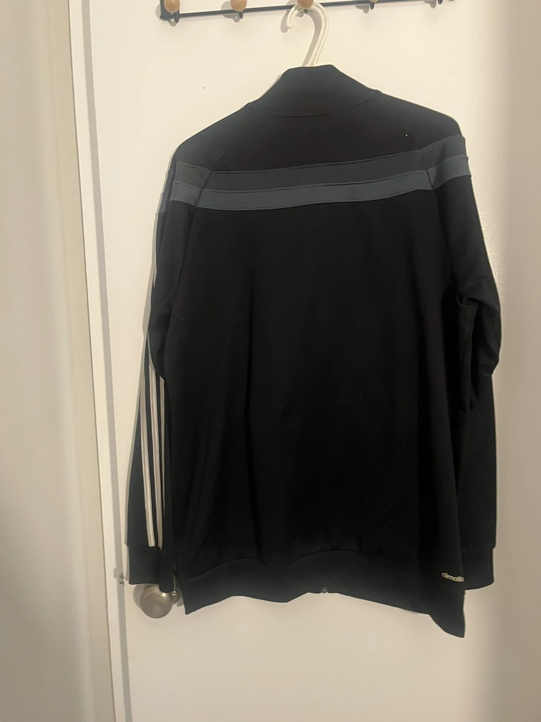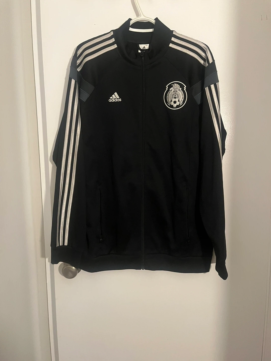 Black Adidas track jacket with Mexico crest and three-stripe detailing. Features climalite technology. Size 2XL.