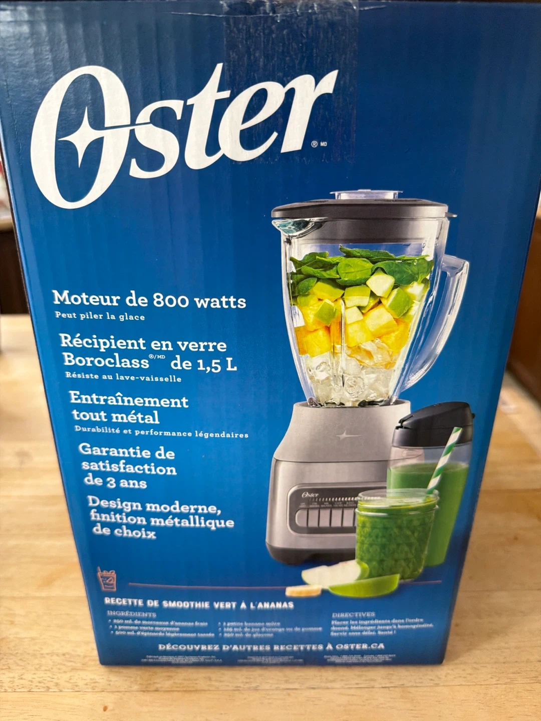 This Oster blender boasts a powerful 800-watt motor and a durable Boroclass glass jar with a 1.5 L capacity. It features an all-metal drive for superior performance and comes with a 20 oz Blend-N-Go cup. This versatile system is engineered for frozen fruits and vegetables!