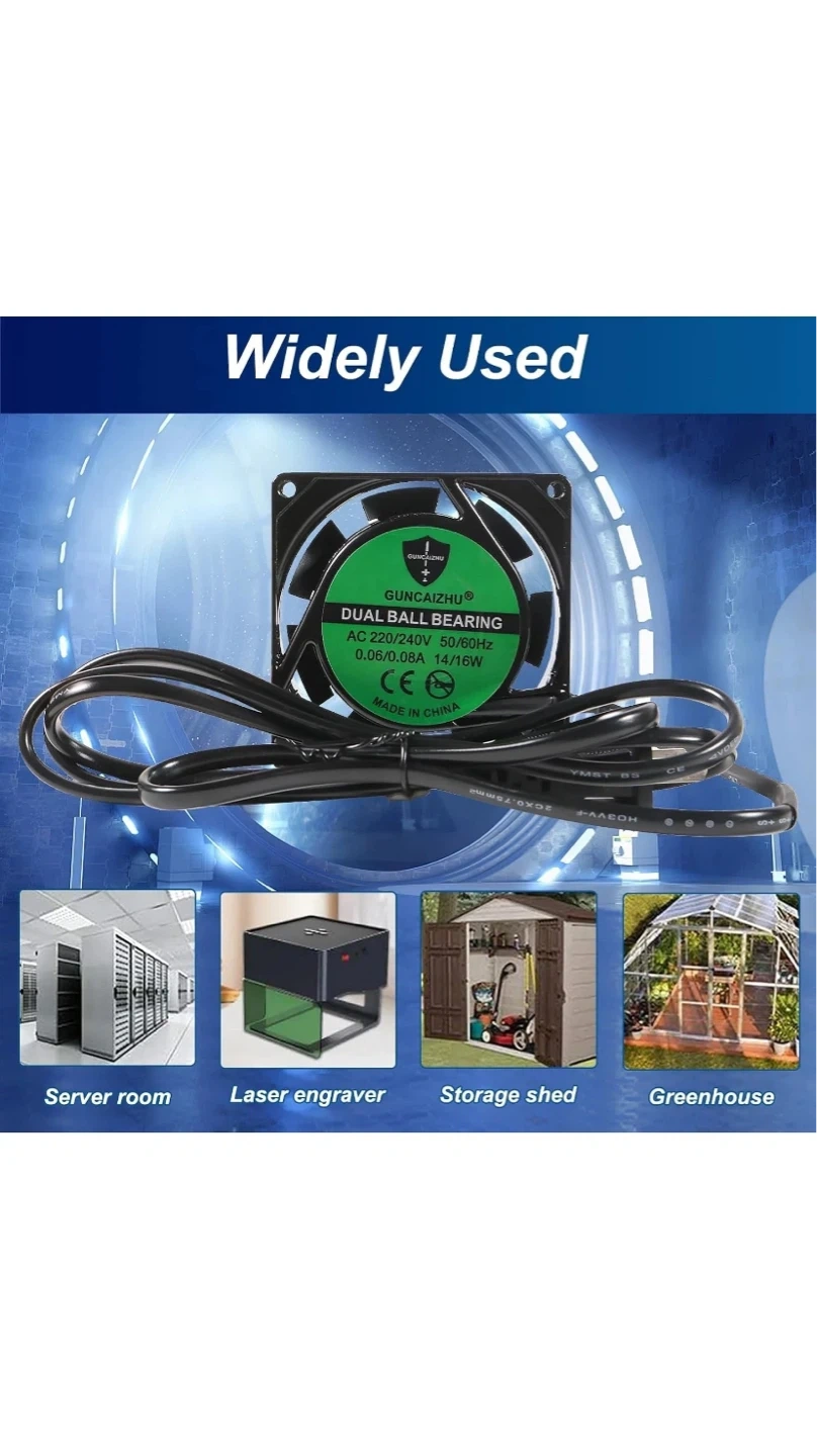 GUNCAIZHU Dual Ball Bearing Fan AC 220-240V 80mm