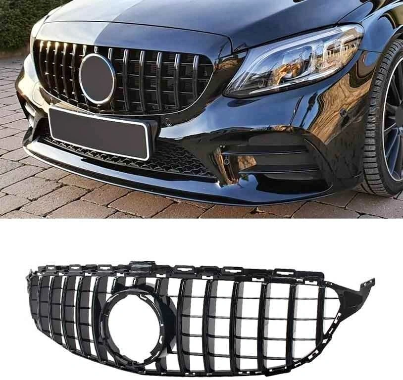 Brand new in box, never installed. This front grille fits 2019-2021 C-Class W205 LCI models (C250, C300, C350, C400). Will NOT fit C63, C63S, or C43 models. Package includes one front grill; emblem or badge not included. Made from durable ABS plastic with a gloss black finish. Direct replacement using original clips, no modifications needed.