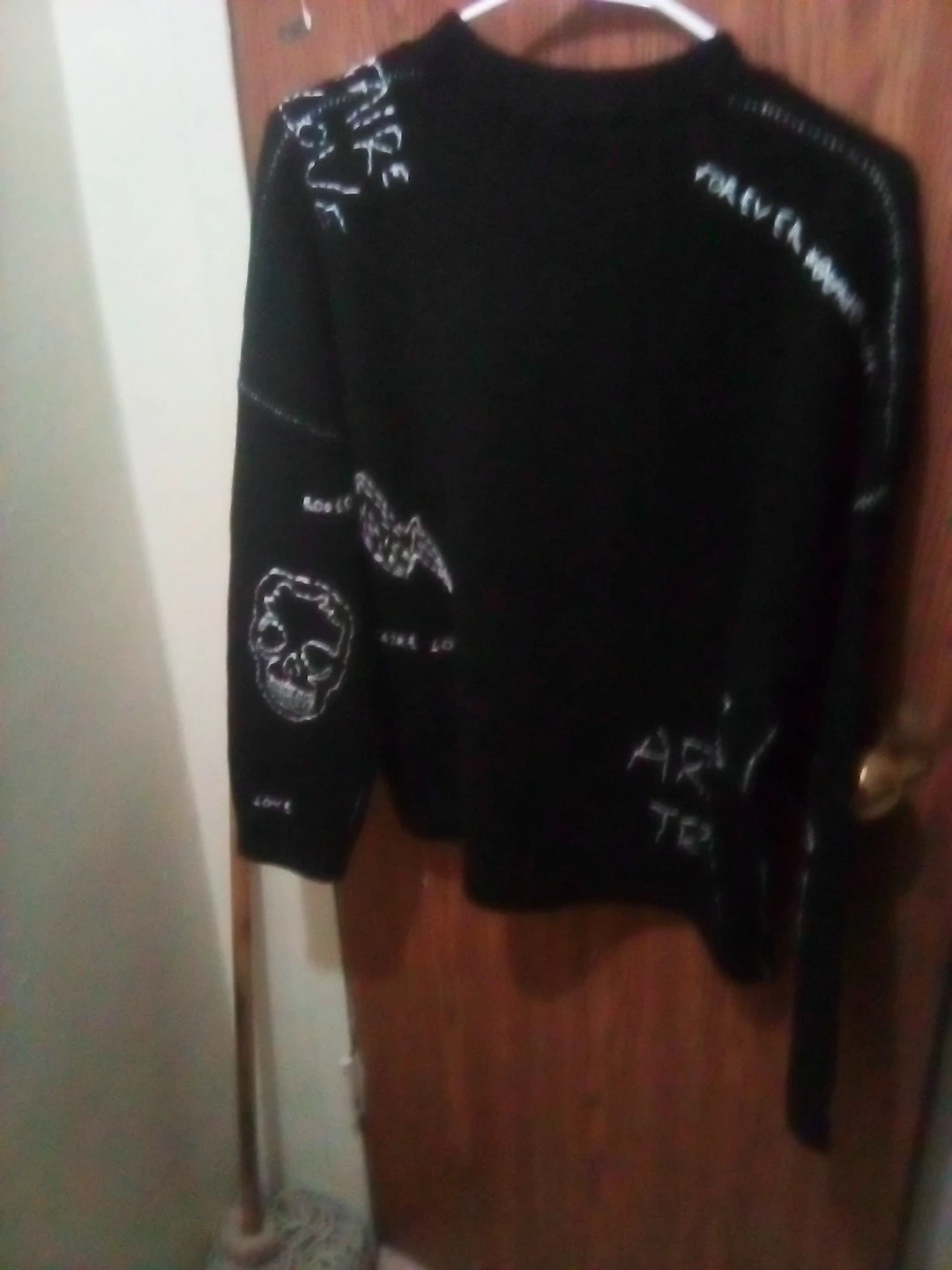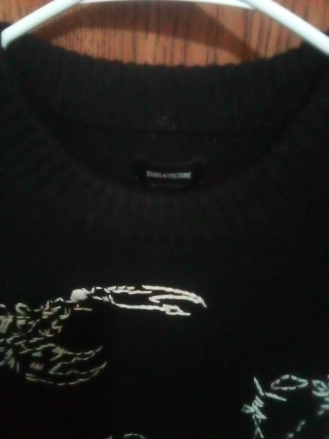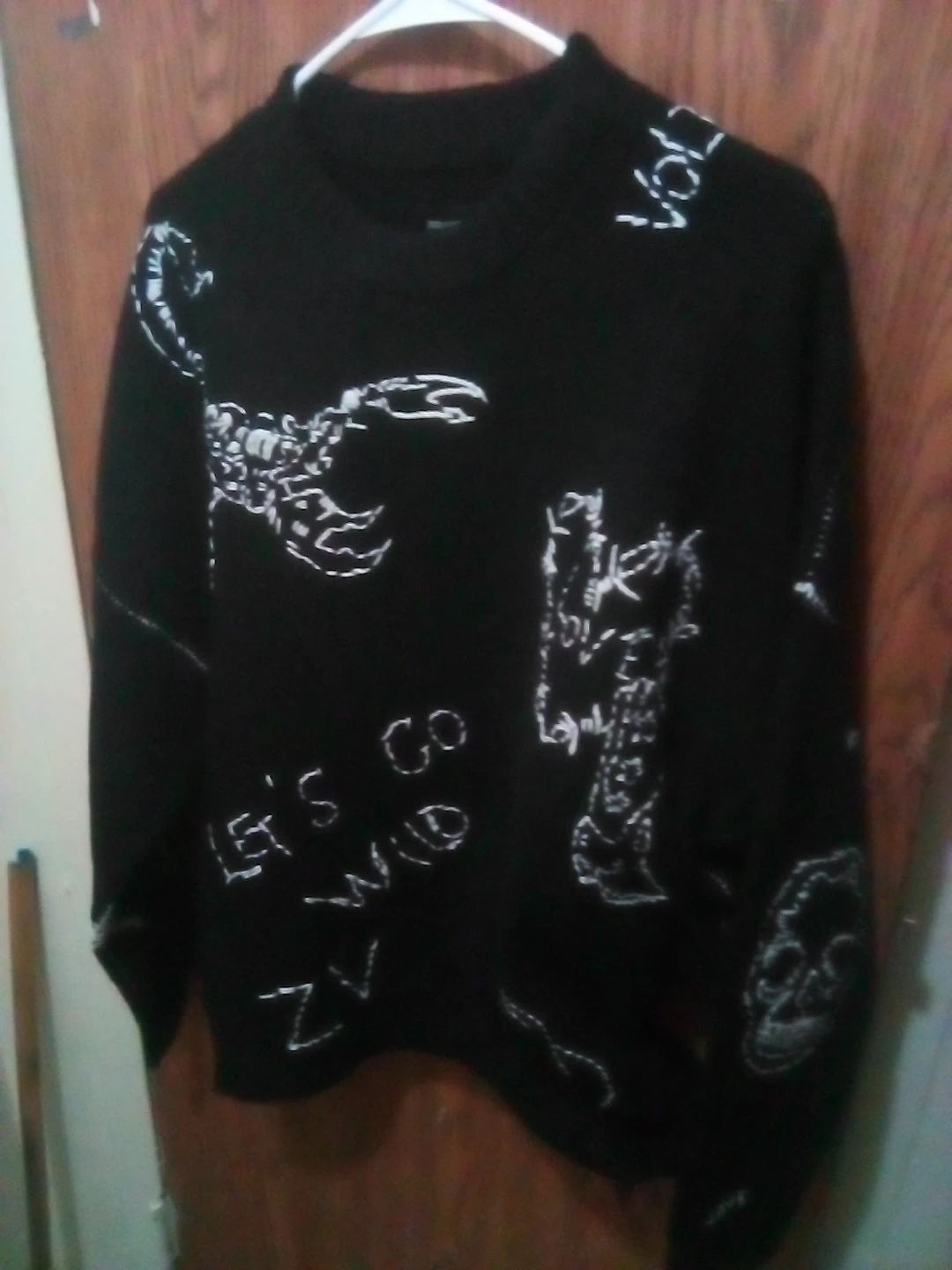 This Zadig & Voltaire sweater features embroidered scorpion and skull designs. It's a black, long-sleeve knit. Crew neck style.$400