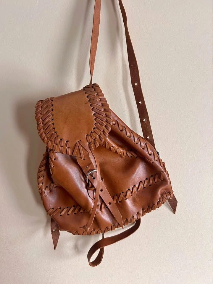 Vintage brown leather whipstitch bag.