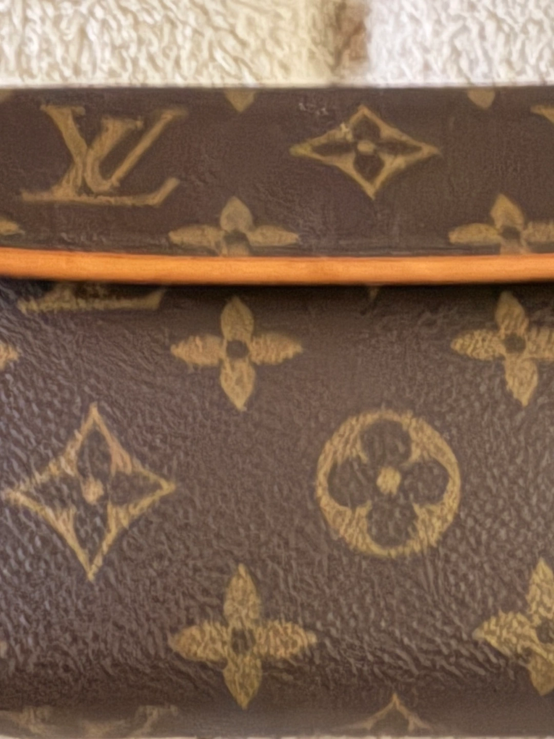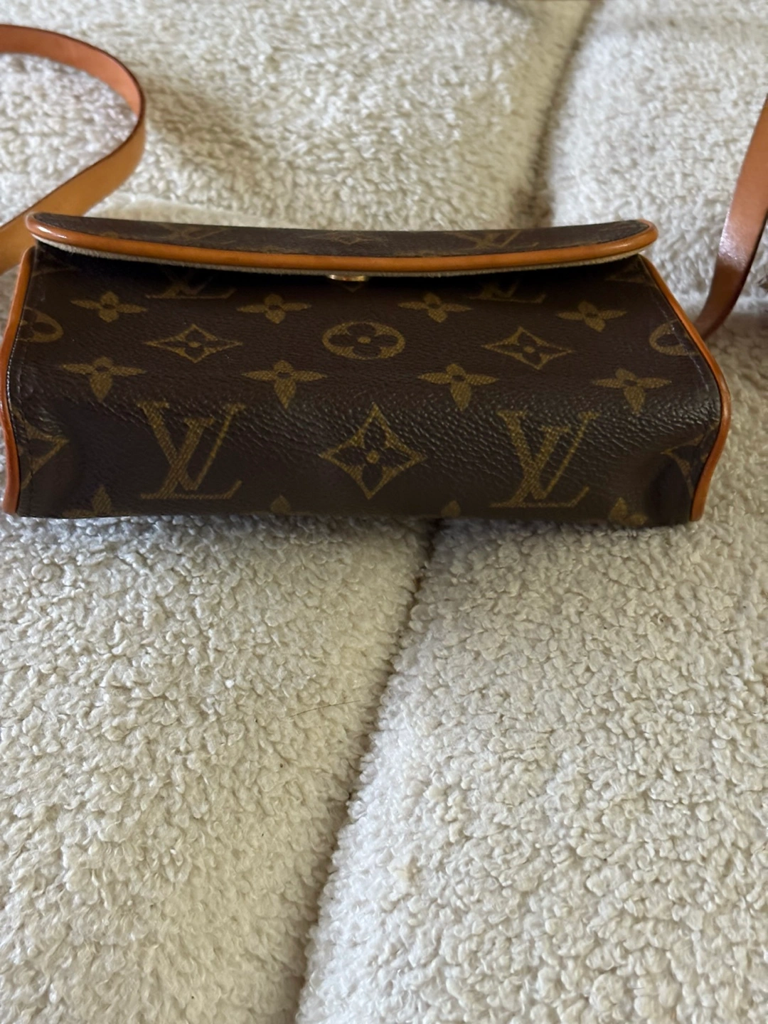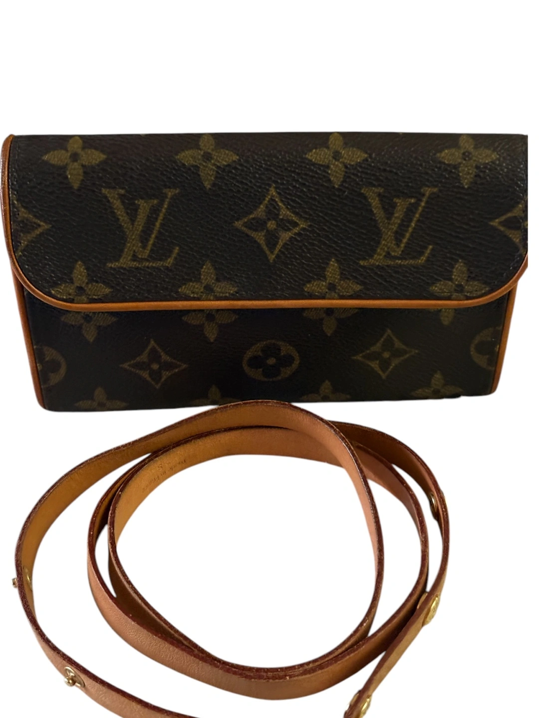 Brown monogram canvas waist pack. Features a light brown leather strap and trim. October 2002 production date code.