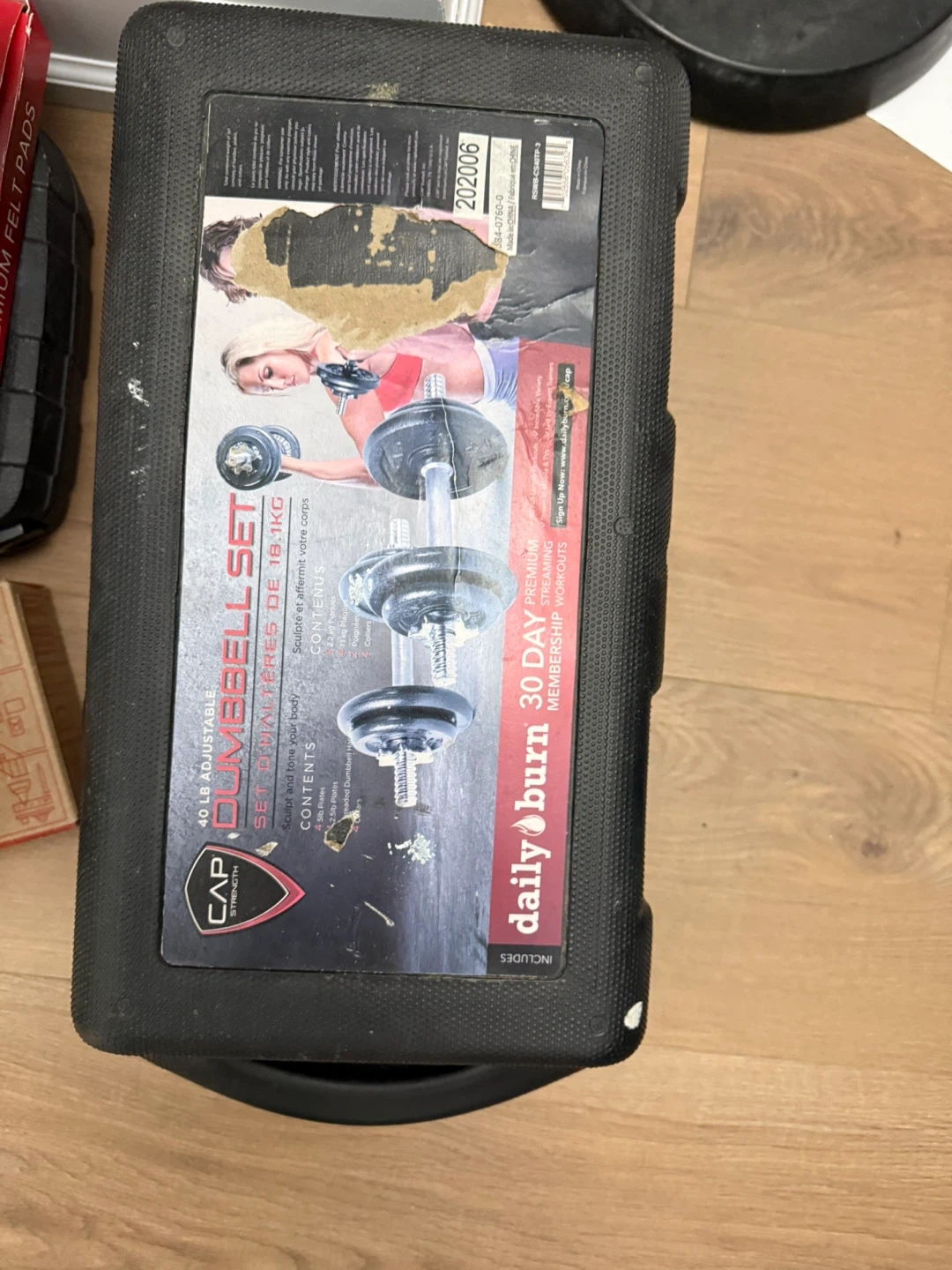 This CAP Barbell adjustable dumbbell set comes with a carrying case. It includes weights and a bar for workouts. Great for building strength at home!