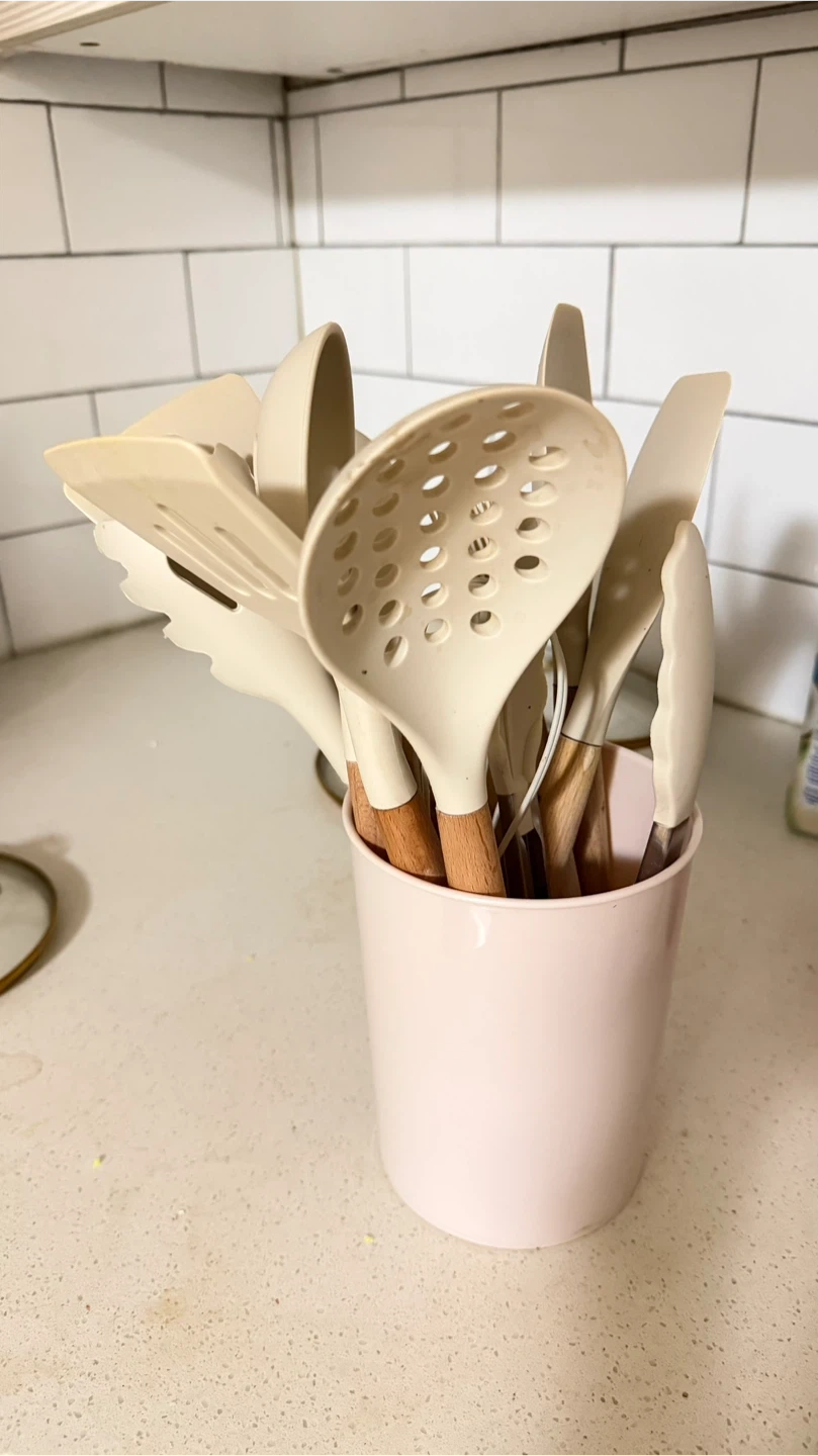 I'm selling a set of bamboo coasters and a collection of kitchen utensils. They're both in great shape and ready for a new kitchen!