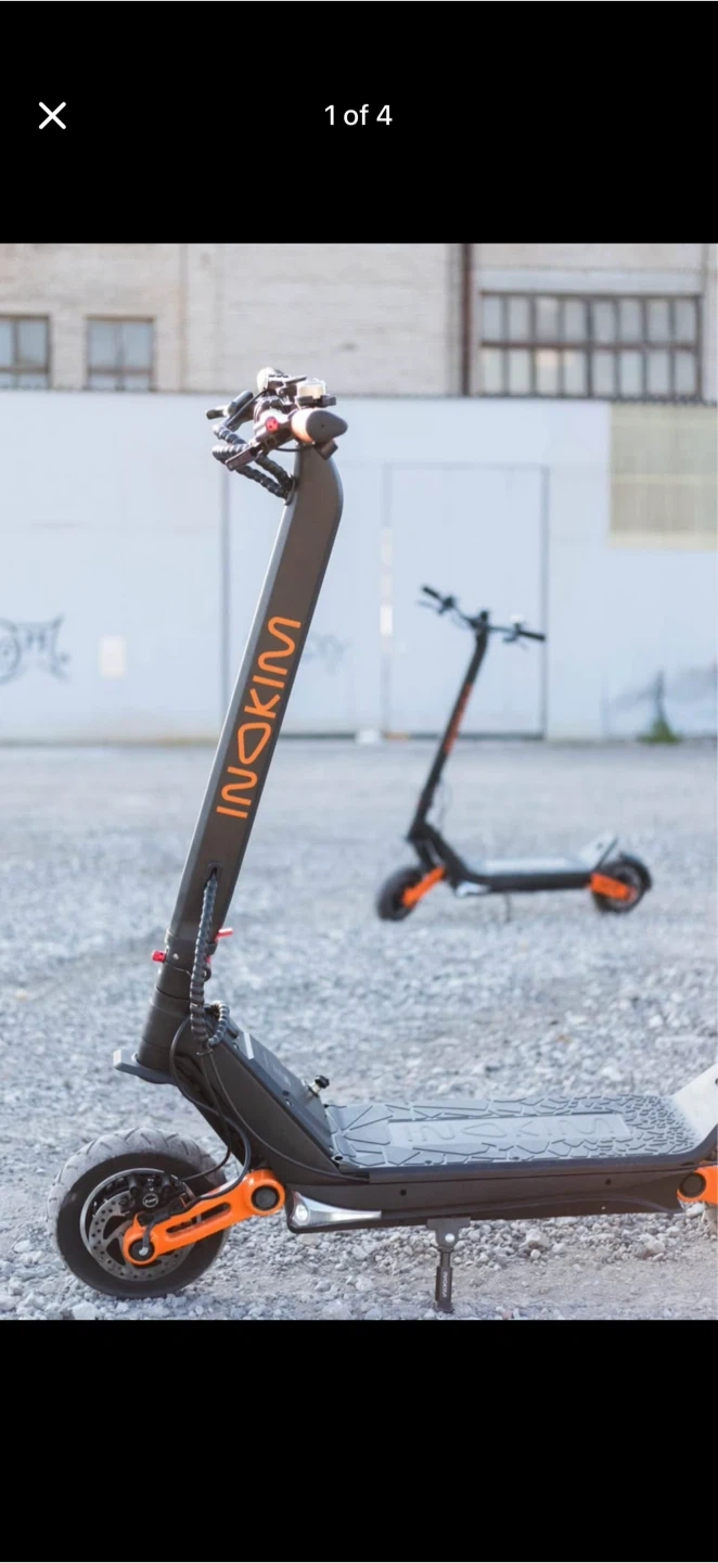 Inokim electric scooter in black with orange accents. Includes a helmet and charger. It's designed for urban commuting. New one is more than 3500$ I’m selling for 2000$ it’s not use much and not drive more than 45miles very less driven but very nice and fast scooter