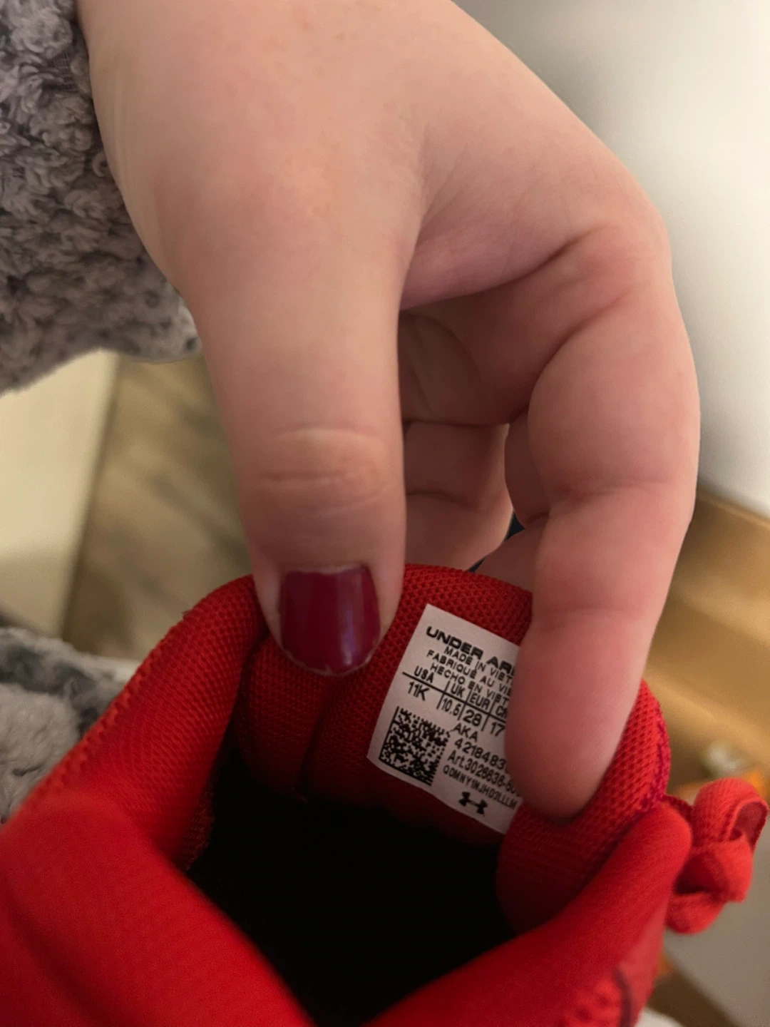 Under armour brand. Lace up athletic runners. Black & red in colour. Size 11C. Brand new condition