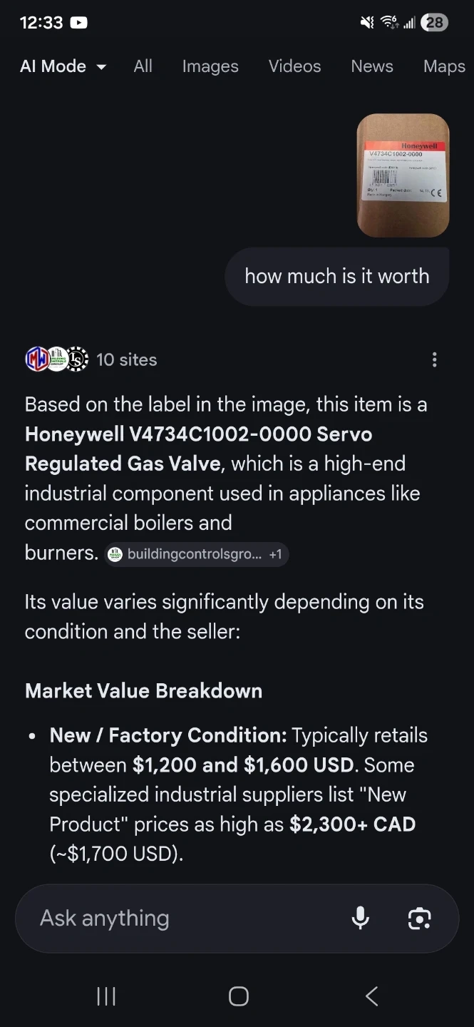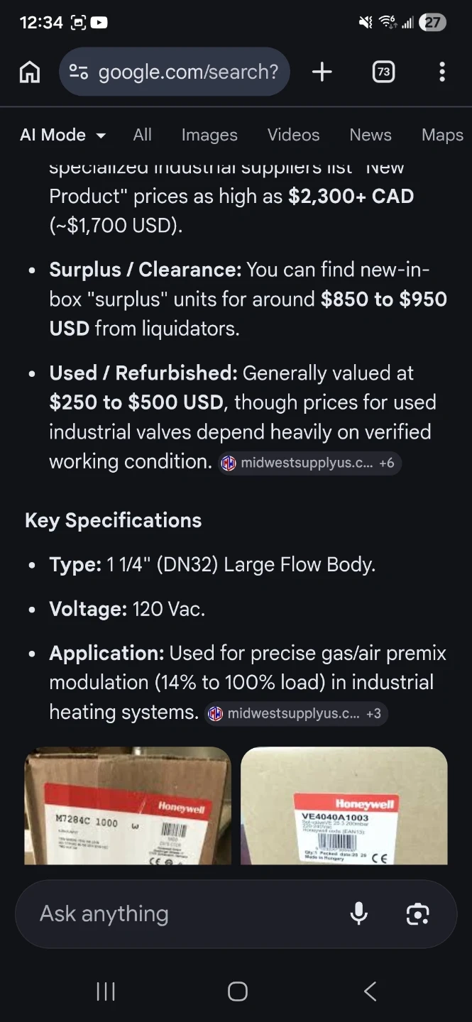 Honeywell V4734C1002-0000 Servo Regulated Gas Valve
