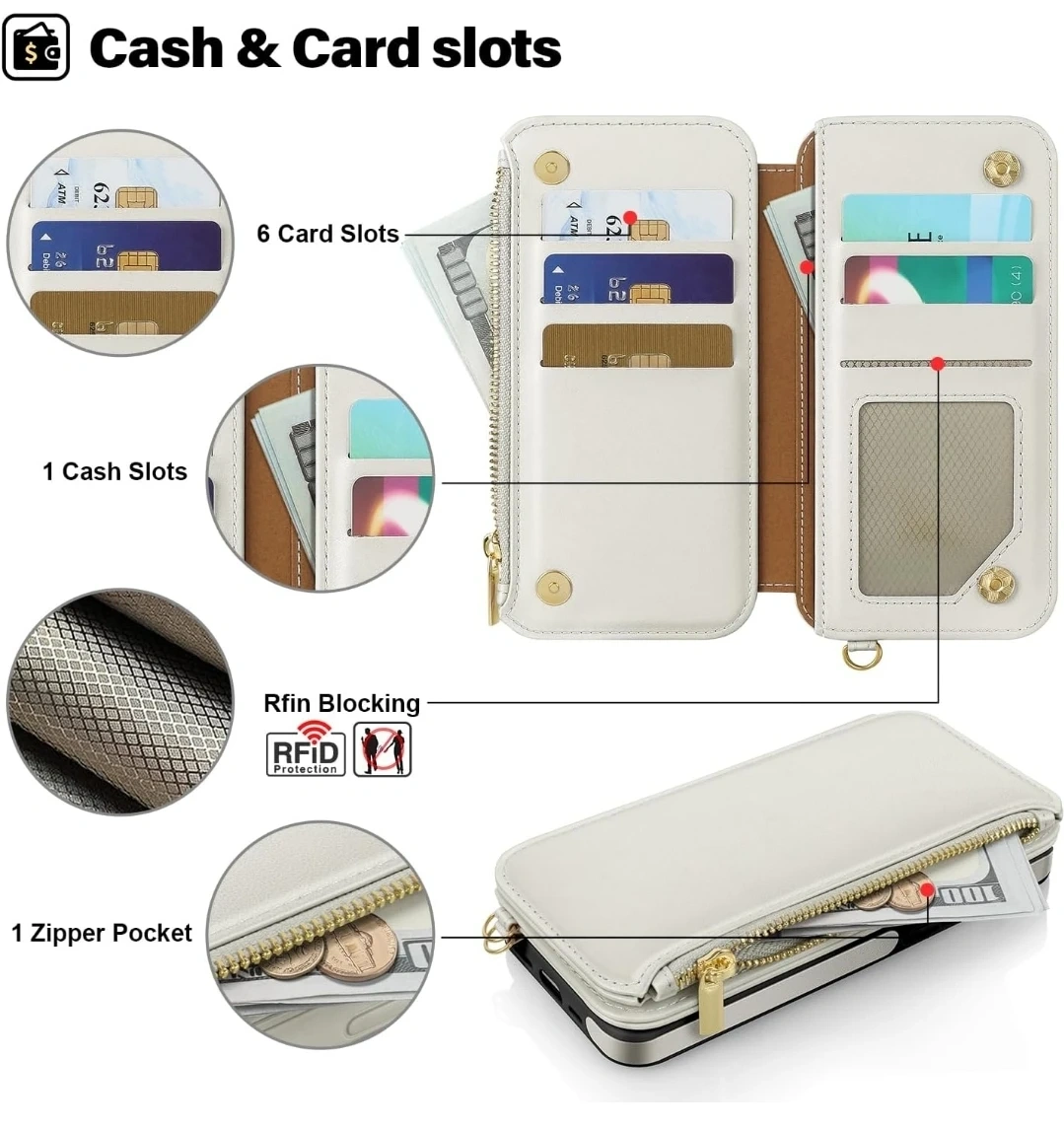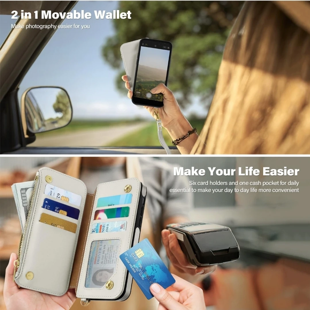 iPhone 15 (6.1") Wallet Case with Zipper and Card Slots