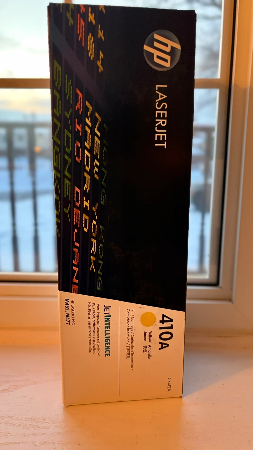 This is a new unused and unopened HP 410A yellow toner cartridge. It's designed for HP LaserJet Pro M452 and M477 printers. Get more pages, performance and protection!