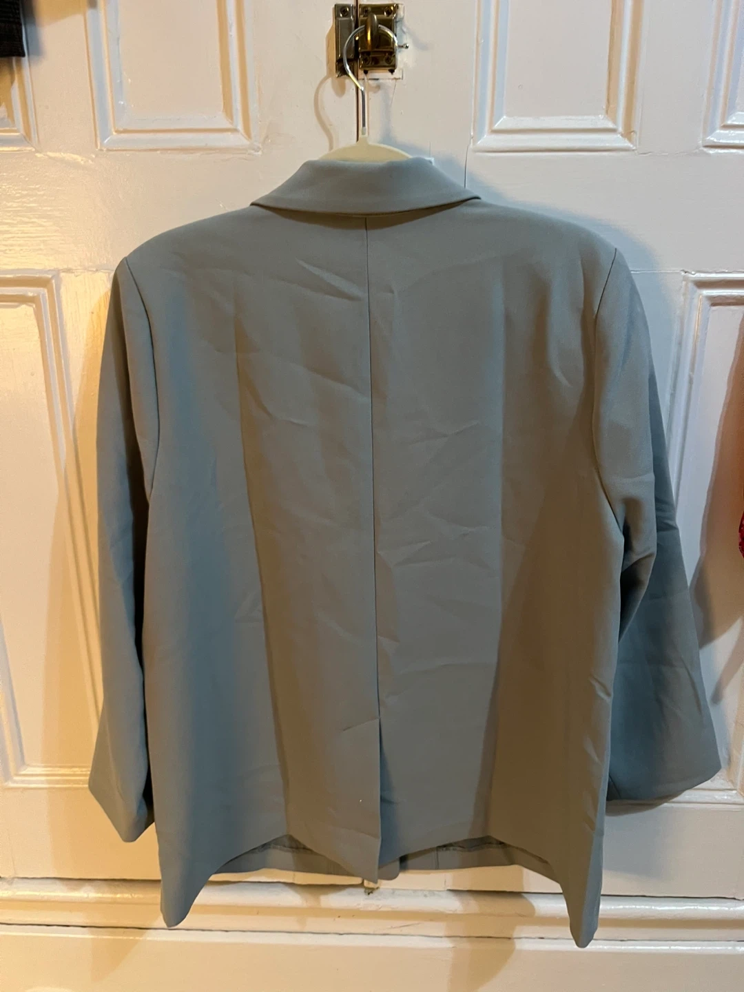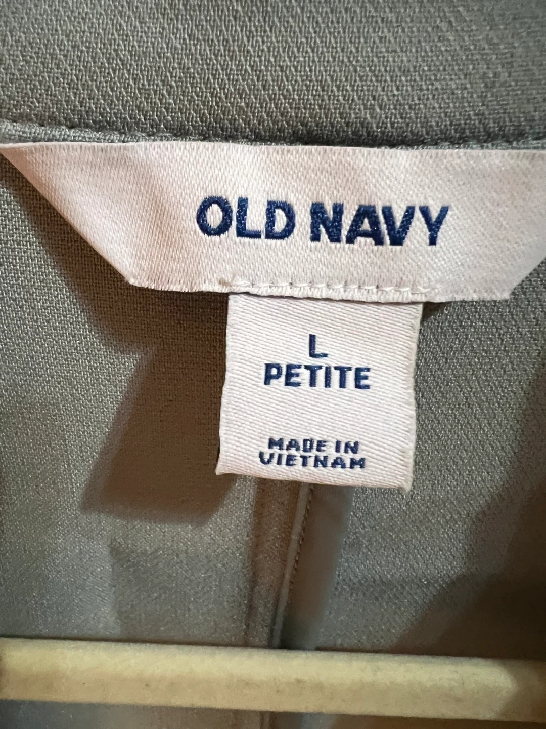 Light mint green Old Navy blazer. Size L Petite. A little wrinkled but just needs a good steaming and it’s good as new! Never worn before but no tags. Two-button closure.