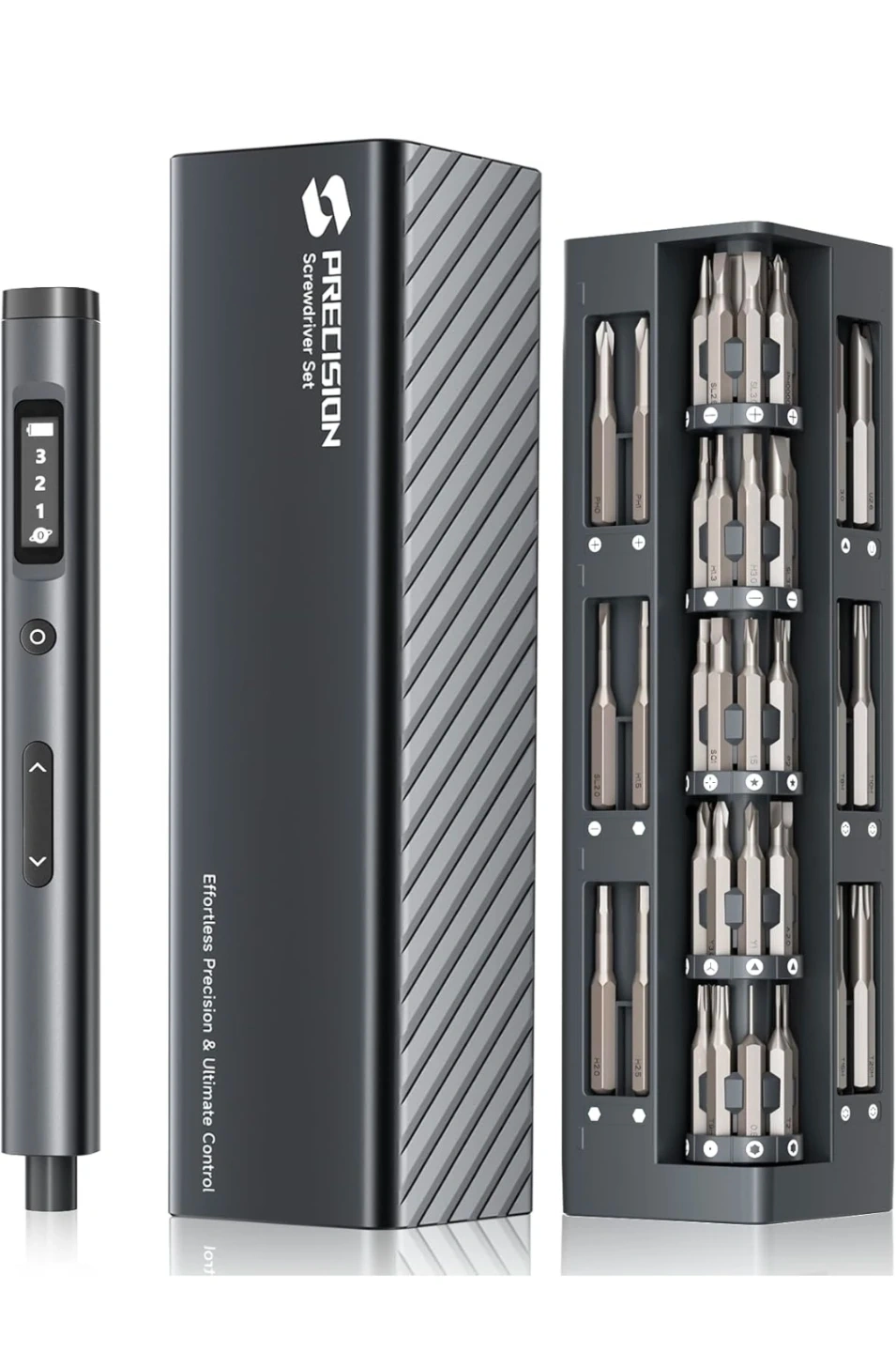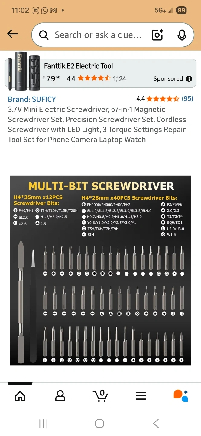 Sealed, new. This is a SUFICY 3.7V mini electric screwdriver set. It includes 57 magnetic bits and has an LED light. Features 3 torque settings and a charging port.
