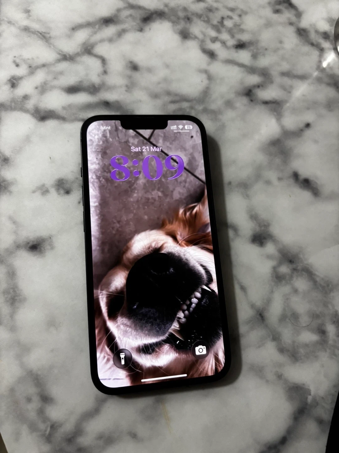 Apple iPhone 13 with 128GB storage in Midnight color. Battery health is at 85% maximum capacity. It's running on iOS.
