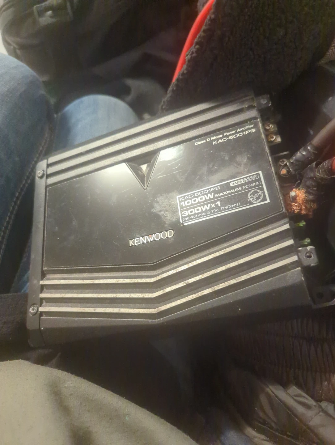 Kenwood Class D mono power amplifier. It's a KAC-5001PS model with 1000W maximum power. It provides 300W x 1 at 4 ohms with less than 1% THD+N. This amp is great for powering a subwoofer or a set of speakers in your vehicle!