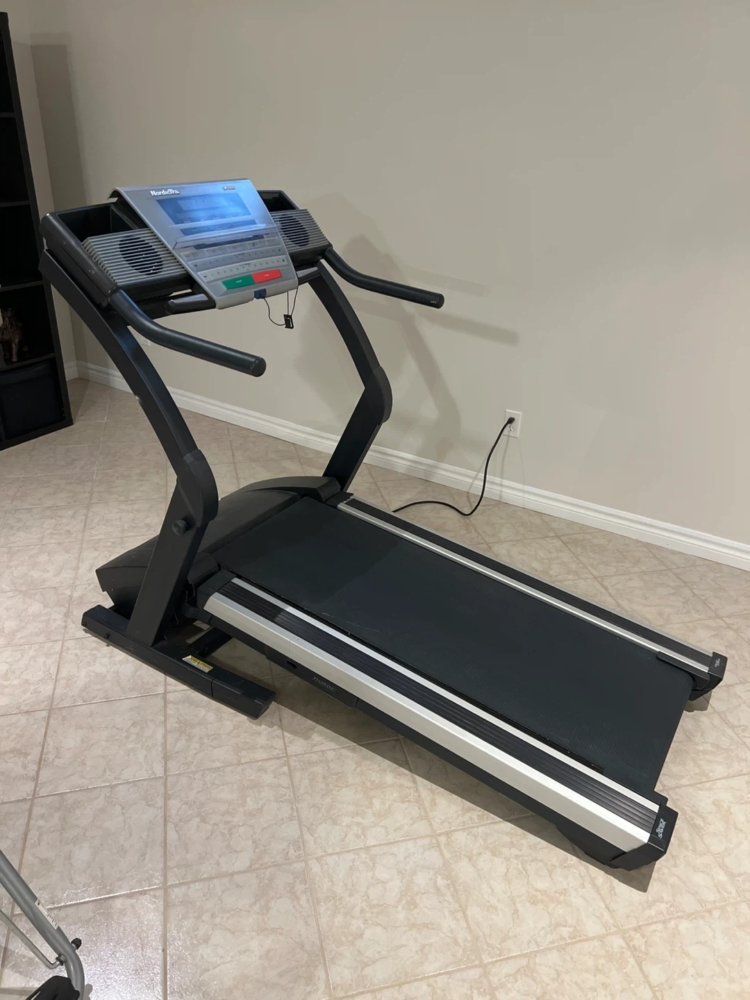 NordicTrack C 900 treadmill for sale. It's a good machine for walking or running indoors. Features a display console and handrail controls.
