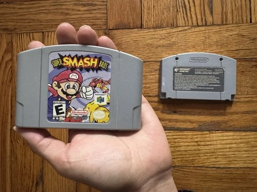 This is my original Super Smash Bros N64 cartridge game, which I've kept in great condition for many years. It's a classic and quite valuable today. This is the authentic version with the original circuit board. It has a few minor scratches, but it's a genuine piece for classic gamers. Be aware of fakes out there, especially those with counterfeit circuit boards. Please look for one that matches this authentic example. This game is a true piece of 90s gaming history. Feel free to message if you have any questions!