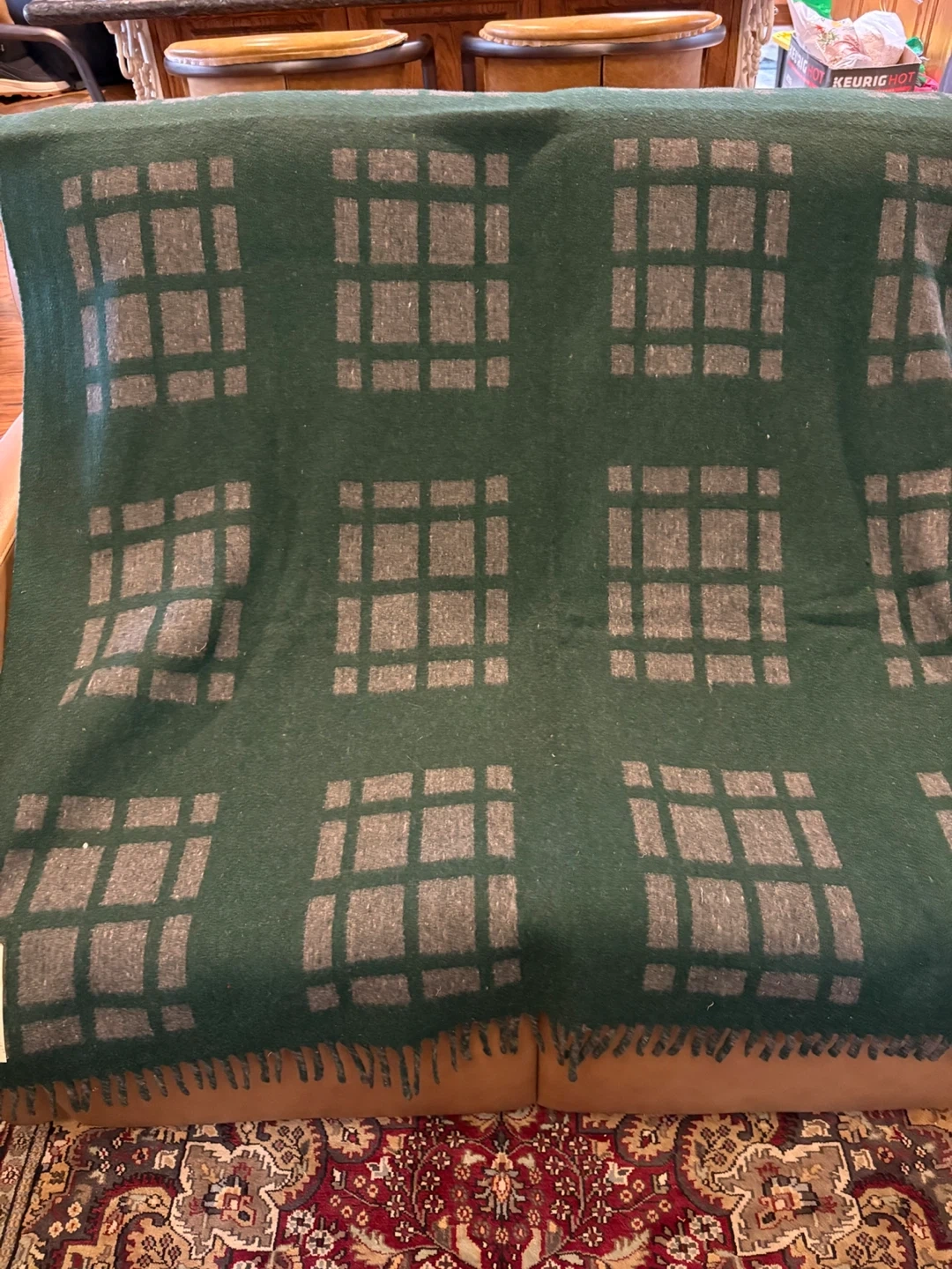 Selling a Dhani Double Bull Blanket, made in India. It features a green and grey plaid pattern. It's in great shape with no stains or holes. It measures 52x92”. Very warm and quite thick