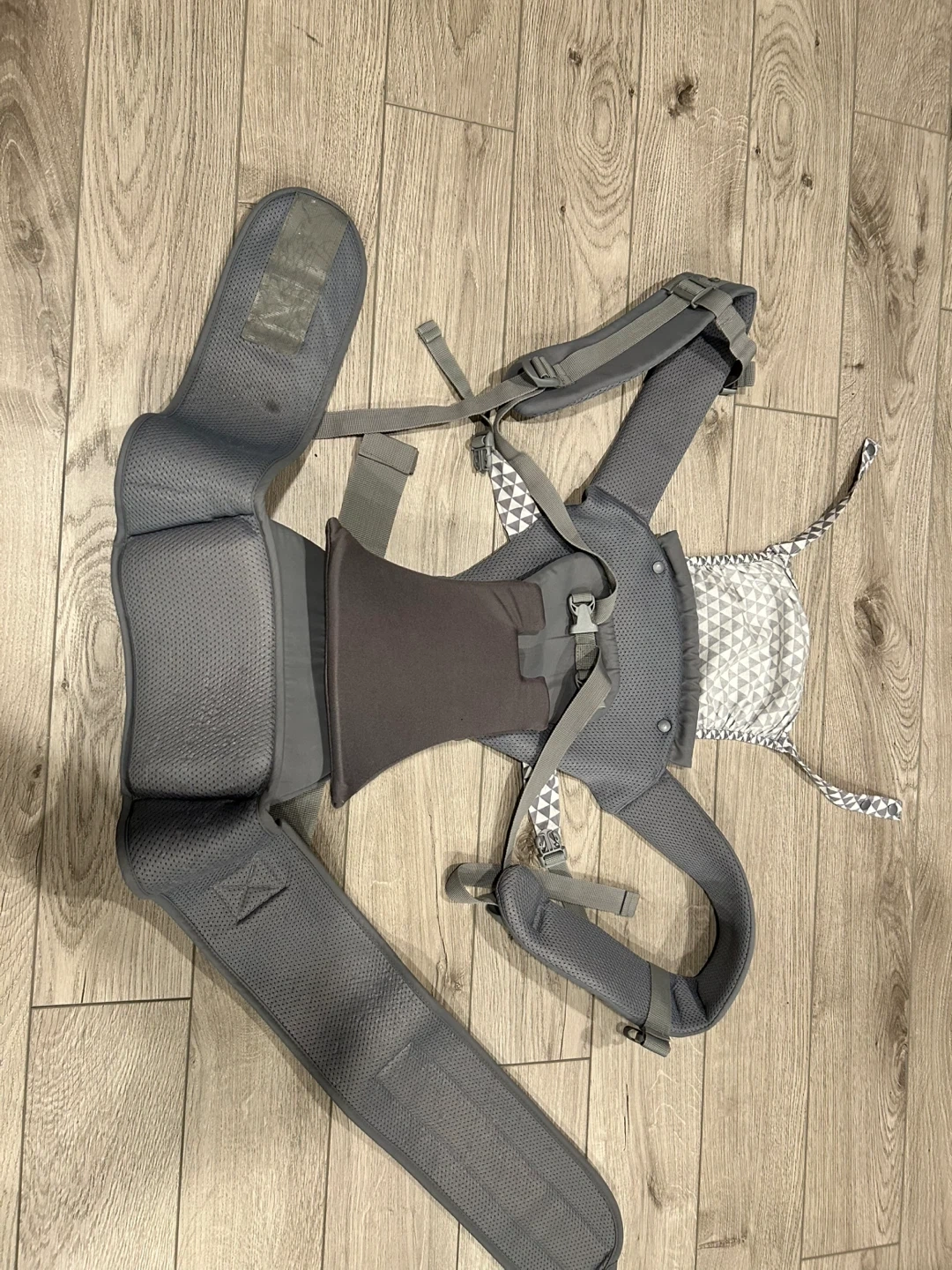 Ainomi New Design baby carrier. It includes infant insert. A detachable hood and padded shoulder straps for comfort. Multiple carrying positions are possible with this carrier.
