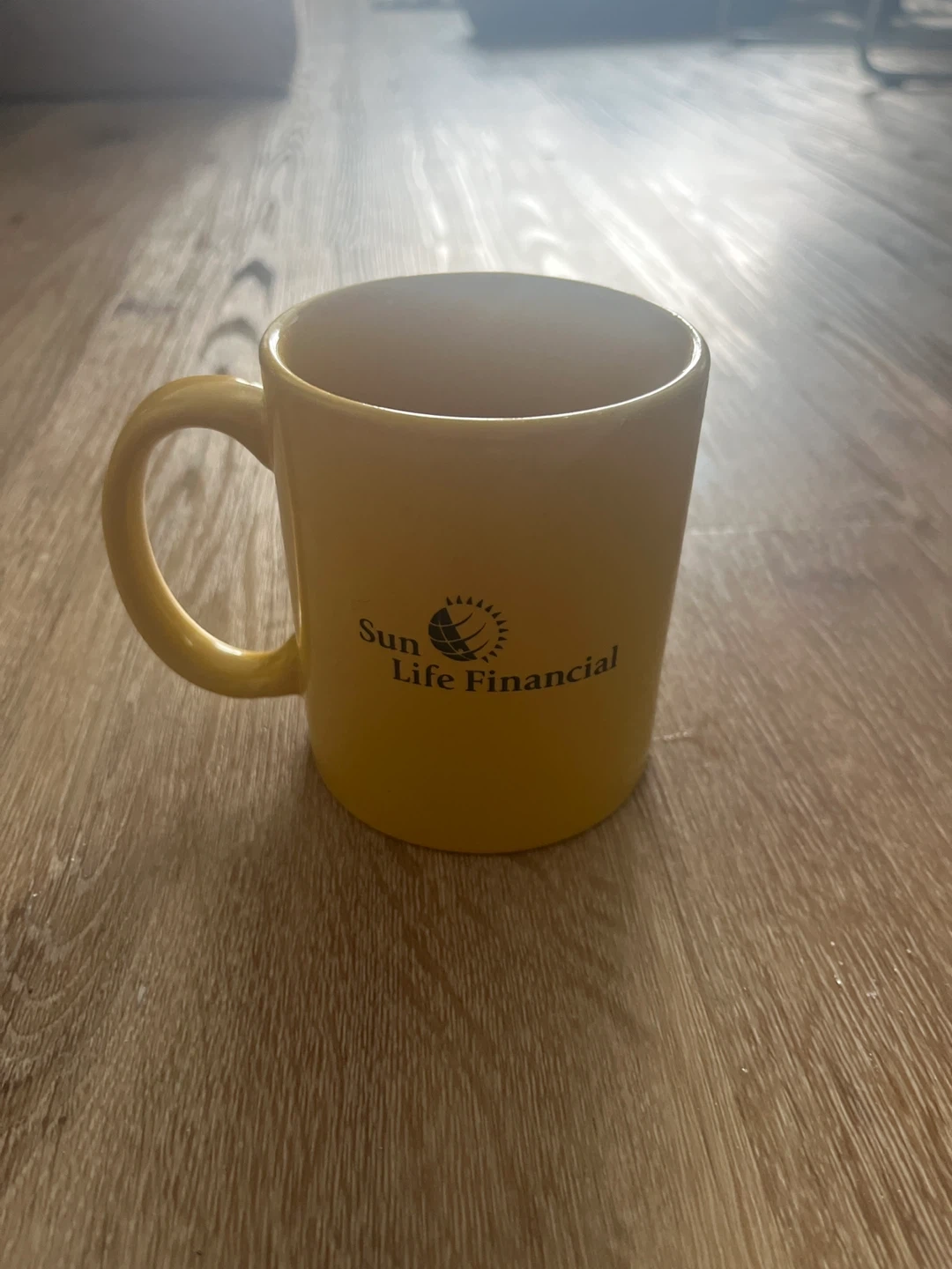 A yellow ceramic mug with the Sun Life Financial logo. It's a standard mug size, perfect for your morning coffee or tea. Great for any Sun Life employee or client!