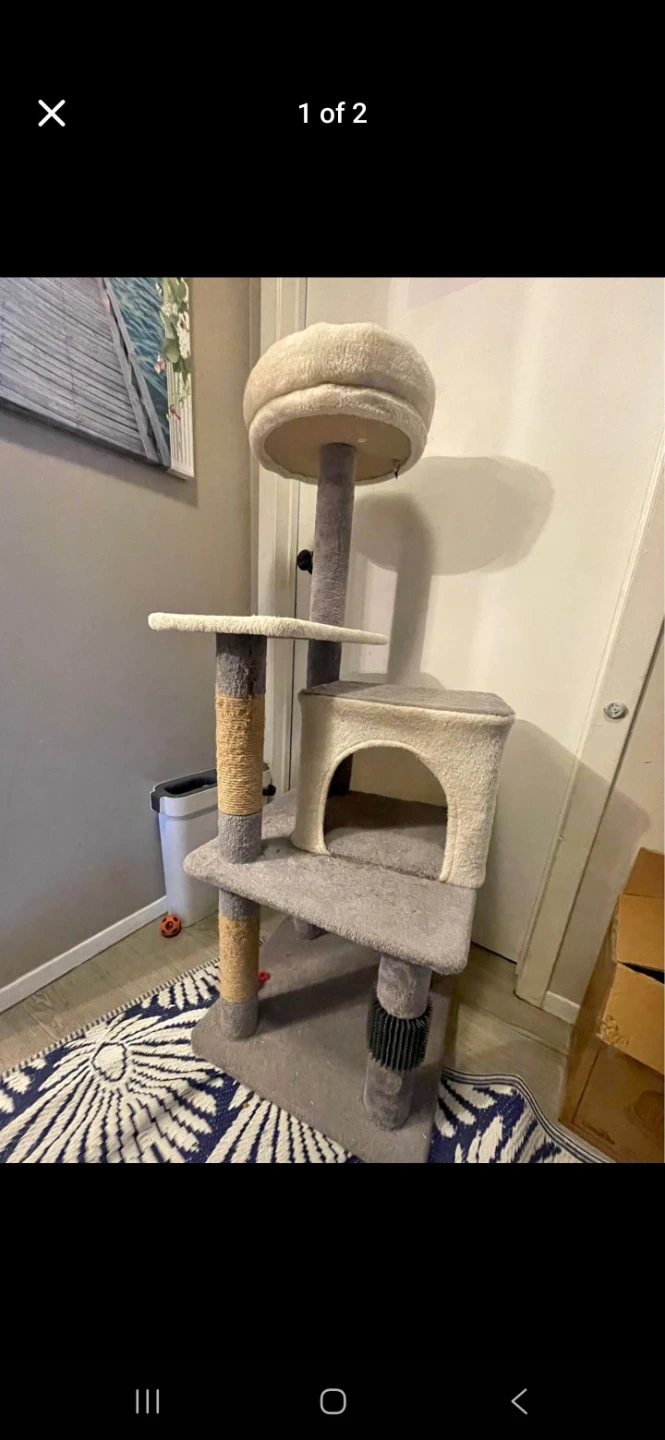 This cat tree has multiple levels for your feline friends to play and relax on. It features a cozy condo for hiding and a large perch at the top for surveying their kingdom. The scratching posts are covered in sisal rope to satisfy their natural urges.