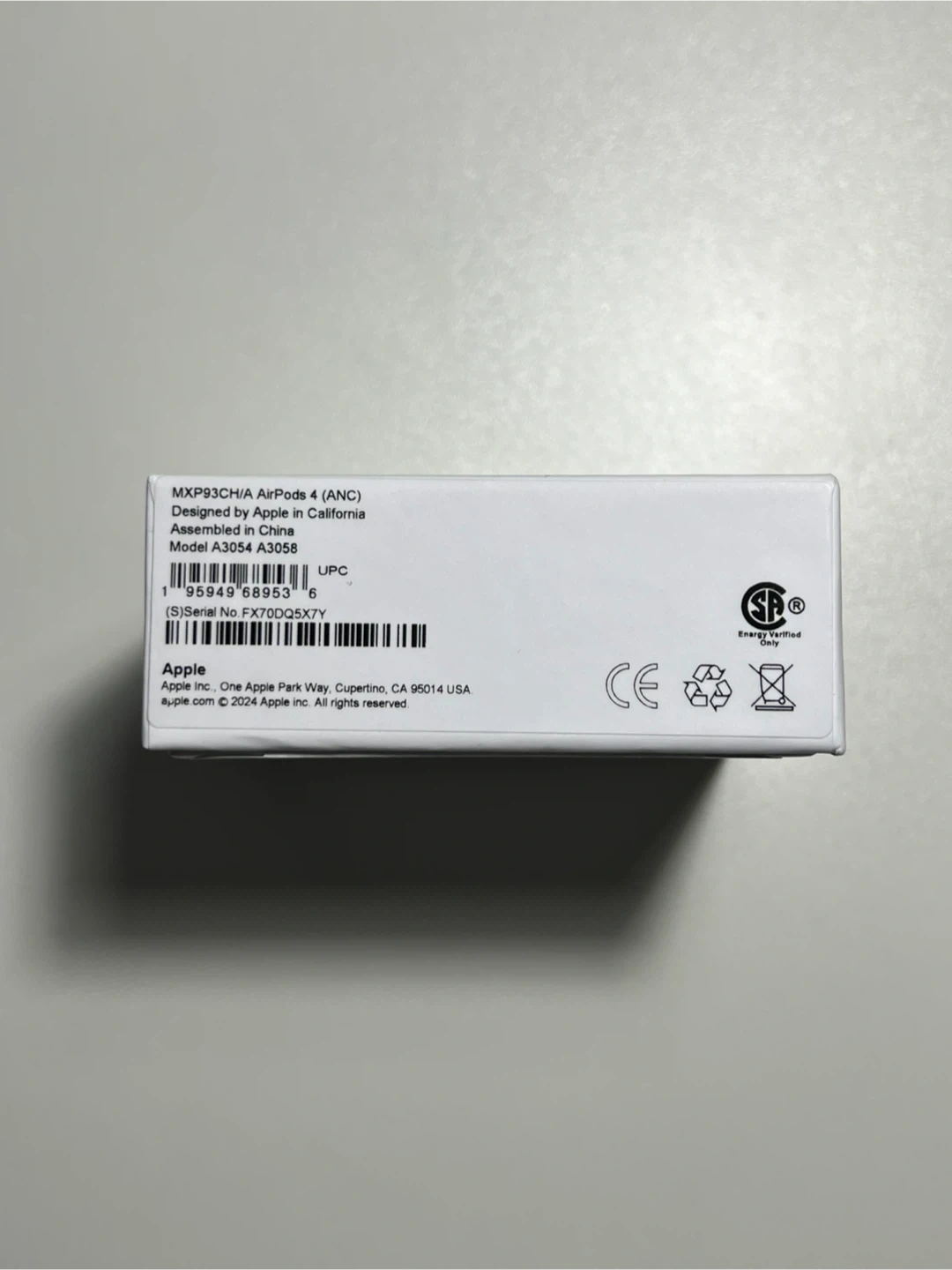 Wireless earbuds with Active Noise Cancellation. Includes charging case and USB-C cable. Compatible with USB-C charging. Designed by Apple in California.