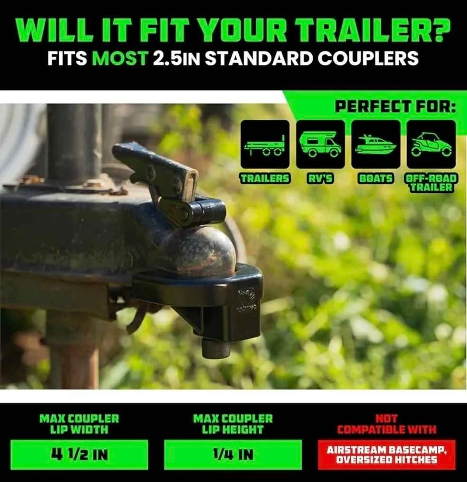 Heavy Duty Powder Coated Finish Shields Against Rust, Corrosion, and Harsh Weather, Ensuring Long-Lasting Protection for Your Trailer Hitch Coupler Lock.