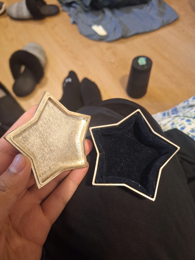 A star shaped container with a fabric interior. I used to keep earrings in it.